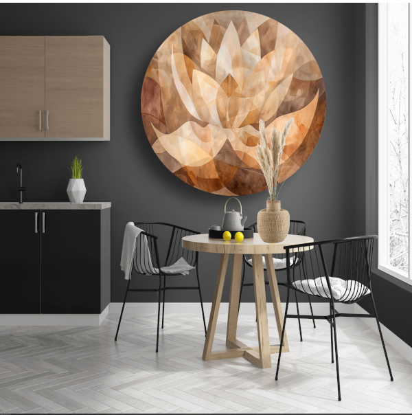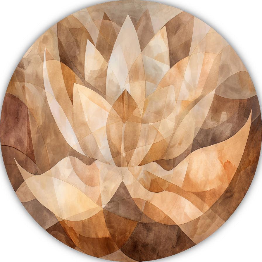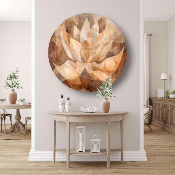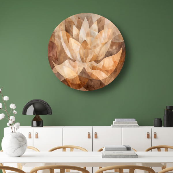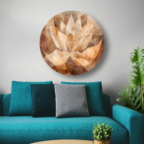 Sepia Lotus Abstractie in Harmonische Tinten aluminium muurcirkel