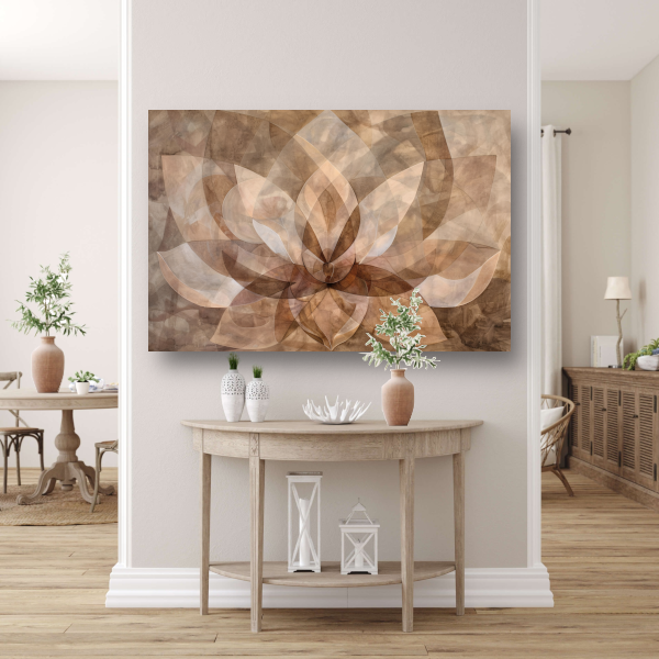 Sepia Lotus Bloesem Abstracte Kunstwerk canvas met baklijst