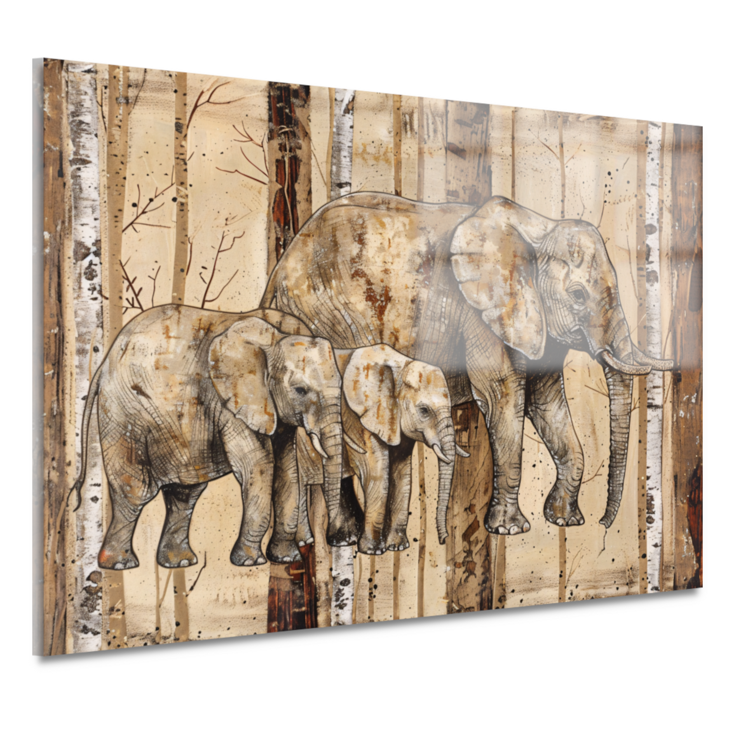 Sepia Olifanten Familie op Houttextuur acrylglas