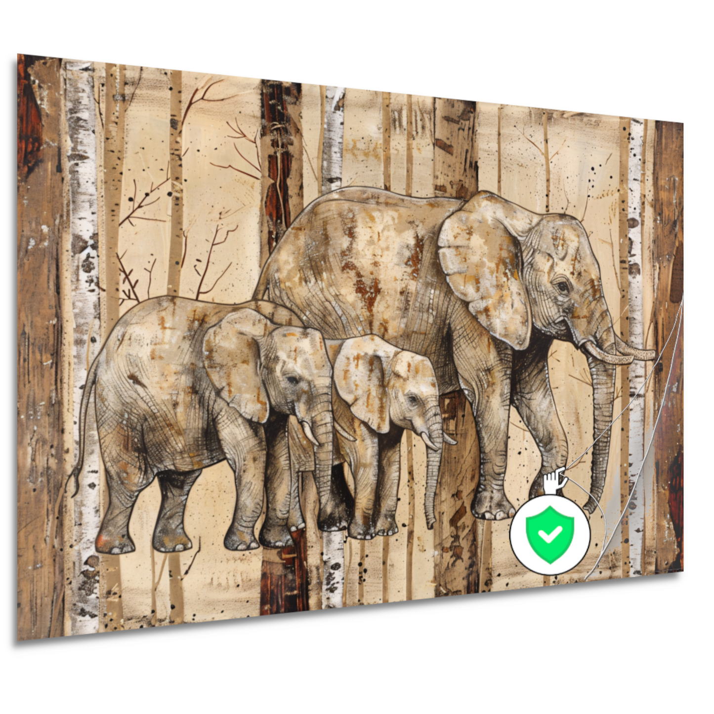 Sepia Olifanten Familie op Houttextuur poster