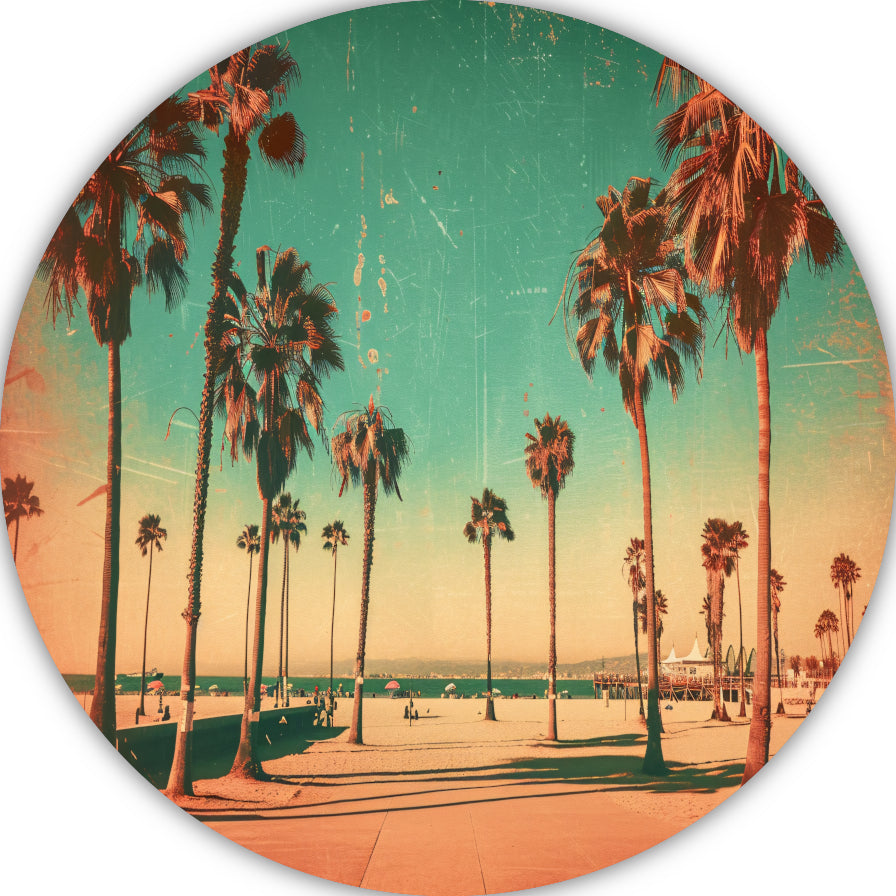 Sepia Palmbomen op een Zonovergoten Strand aluminium muurcirkel