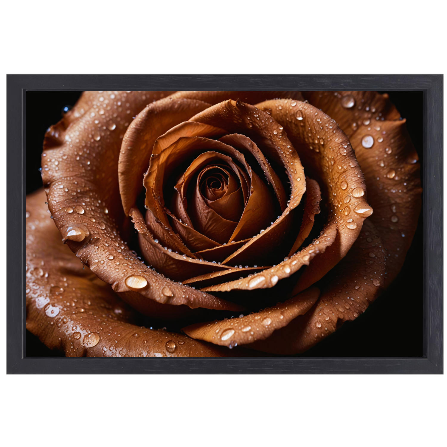 Sepia Roos met Waterdruppels Close-up canvas met baklijst
