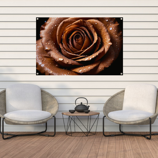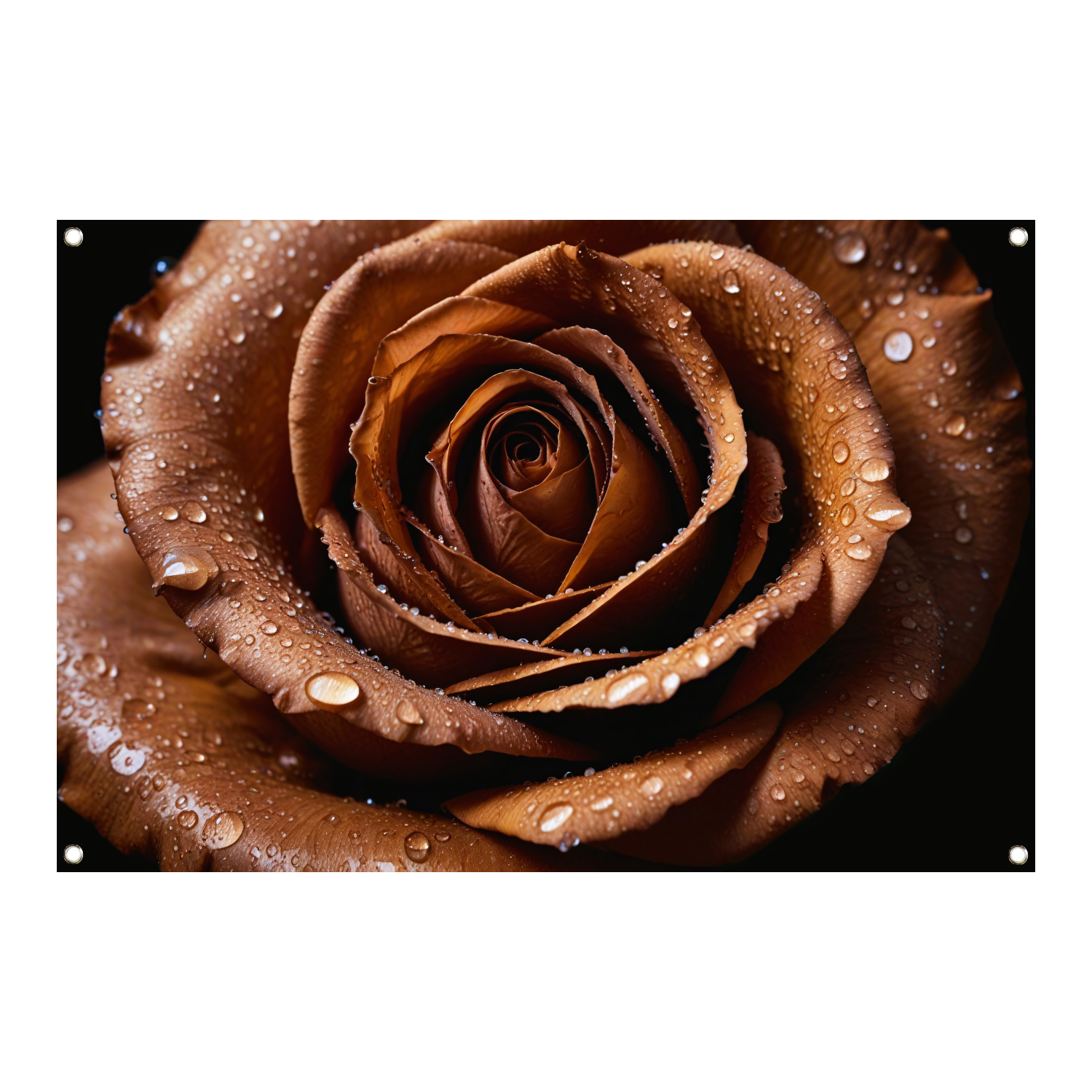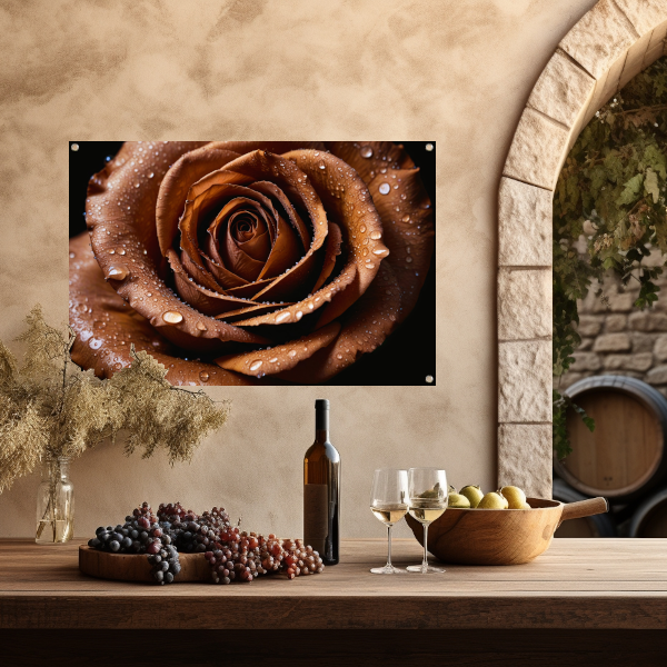 Sepia Roos met Waterdruppels Close-up tuinposter