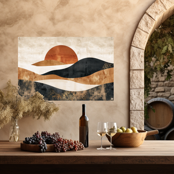 Sepia Tinten Abstracte Zonsondergang Kunst tuinposter