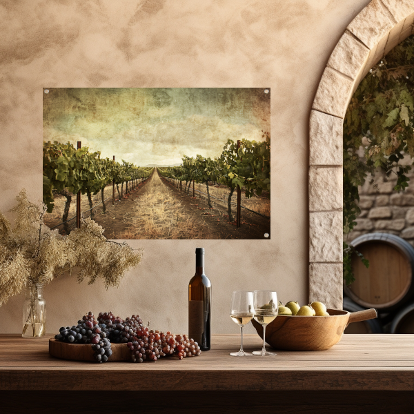 Sepia Wijngaard Landschap met Rijpe Druiven tuinposter