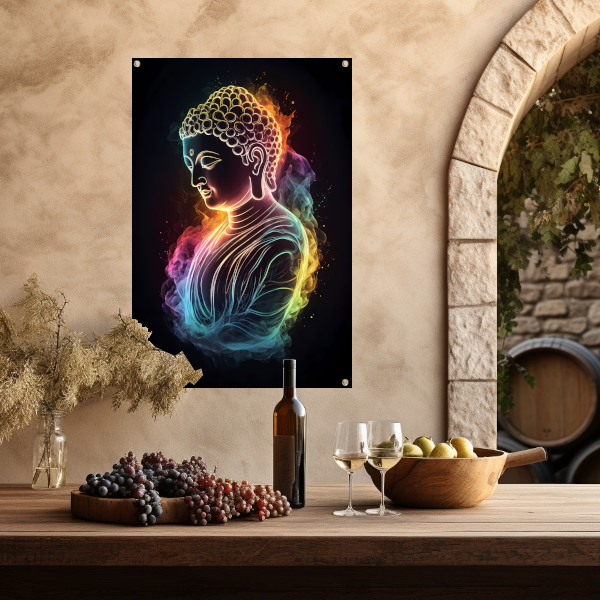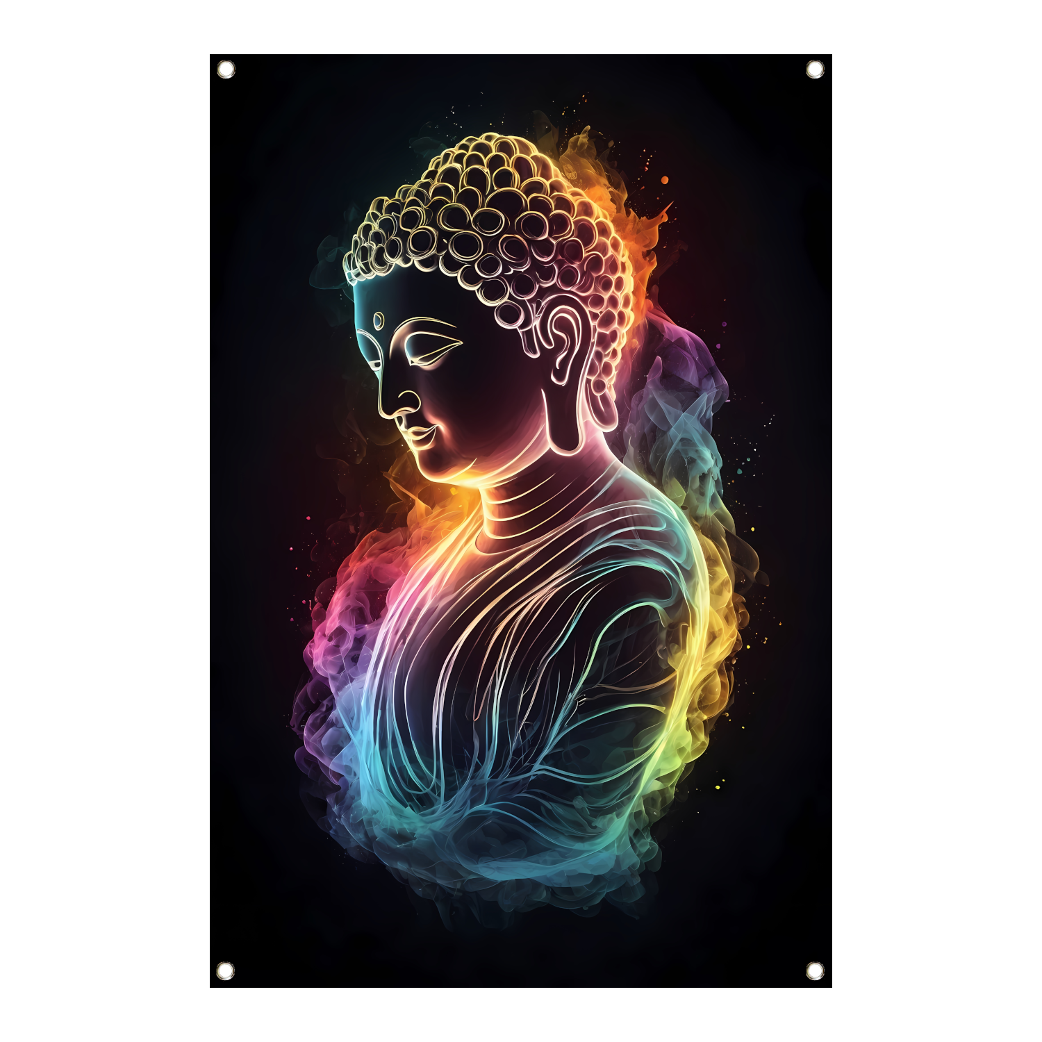 Serene Boeddha in Kleurrijk Spectraal Licht tuinposter