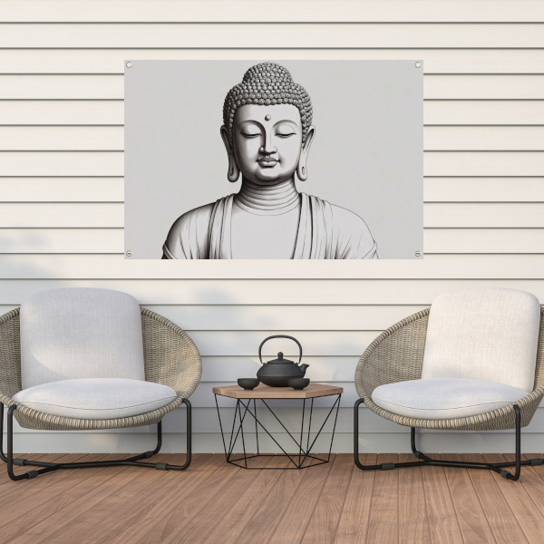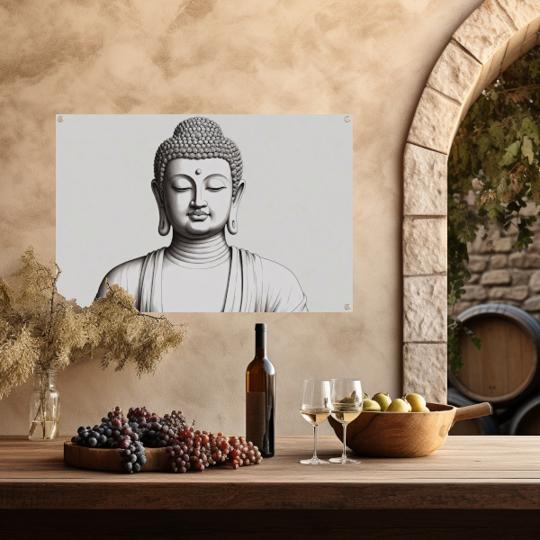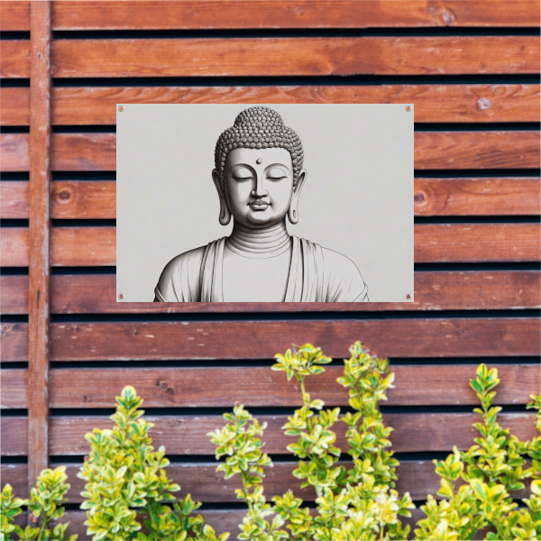 Serene Boeddha in minimalistische lijnkunst tuinposter