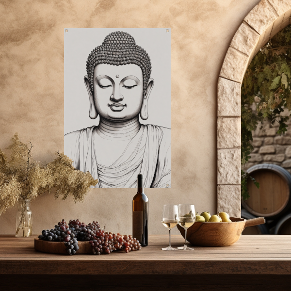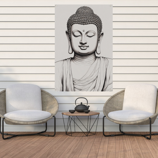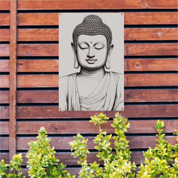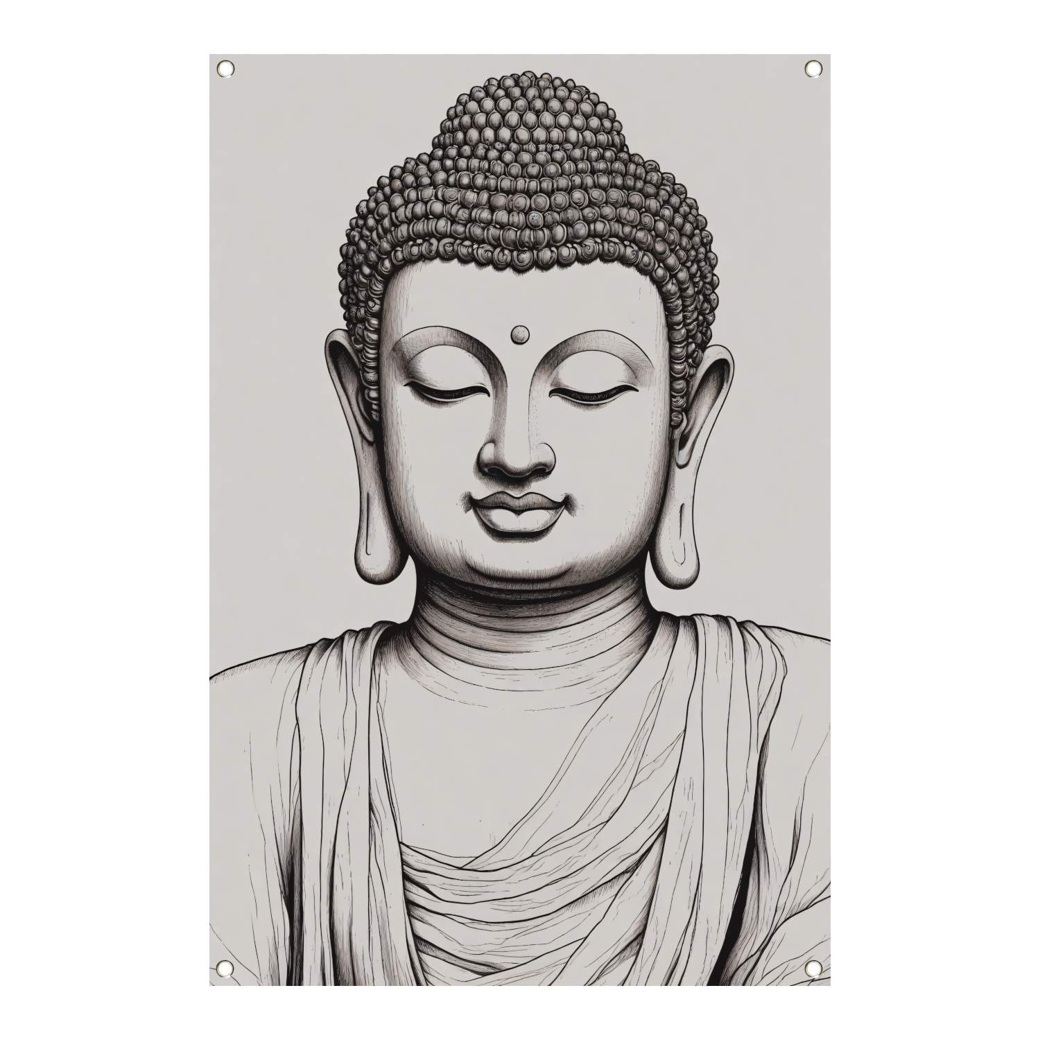 Serene Boeddha in Monochroom Gewaad tuinposter