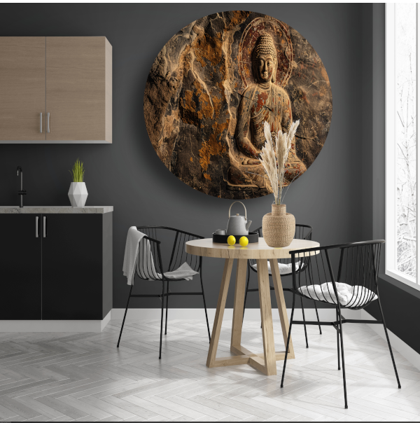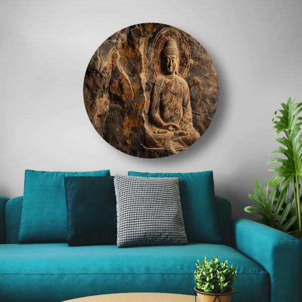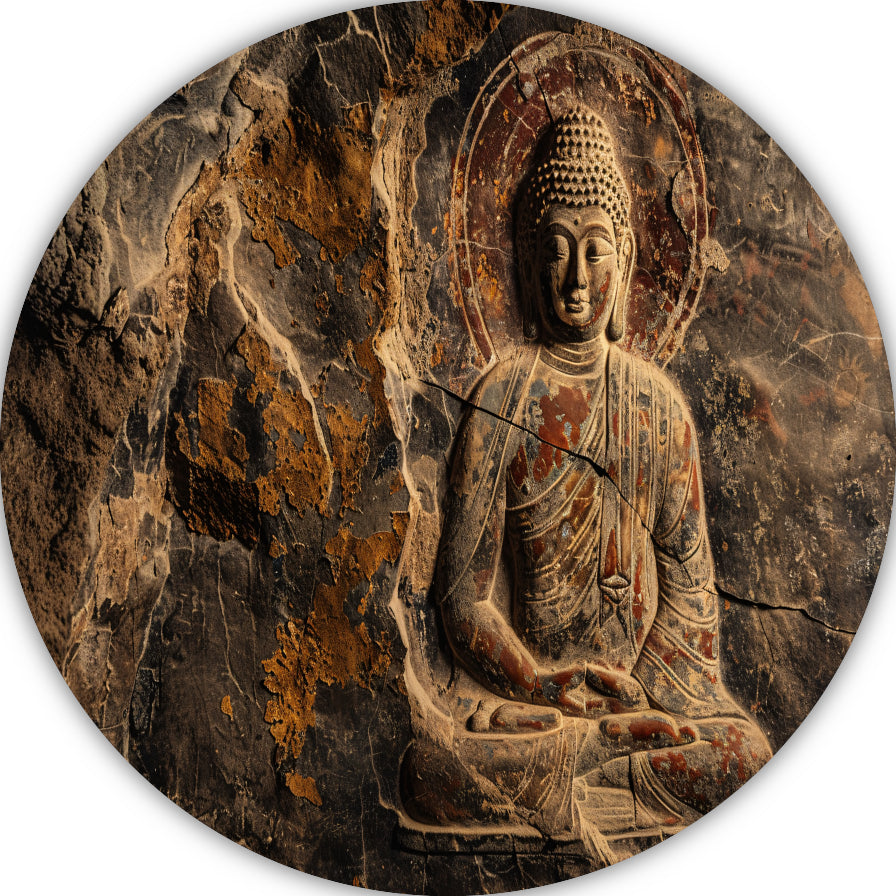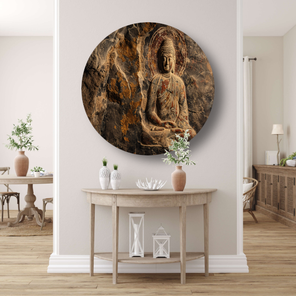 Serene Boeddha in Sepia Steen Reliëf forex muurcirkel