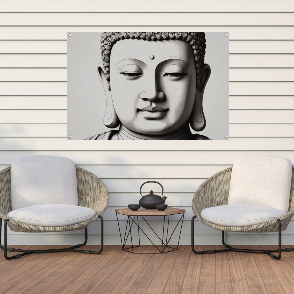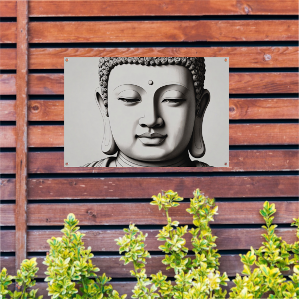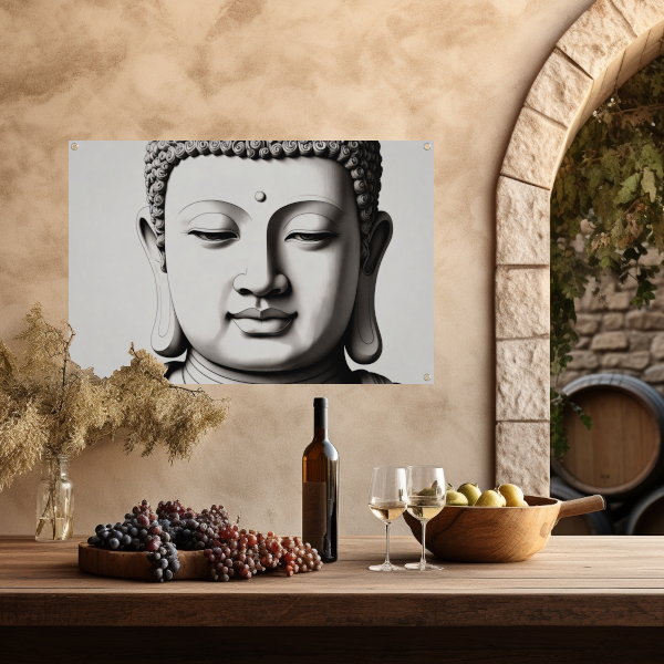 Serene Boeddha, Zwart-Wit Minimalistisch Ontwerp tuinposter