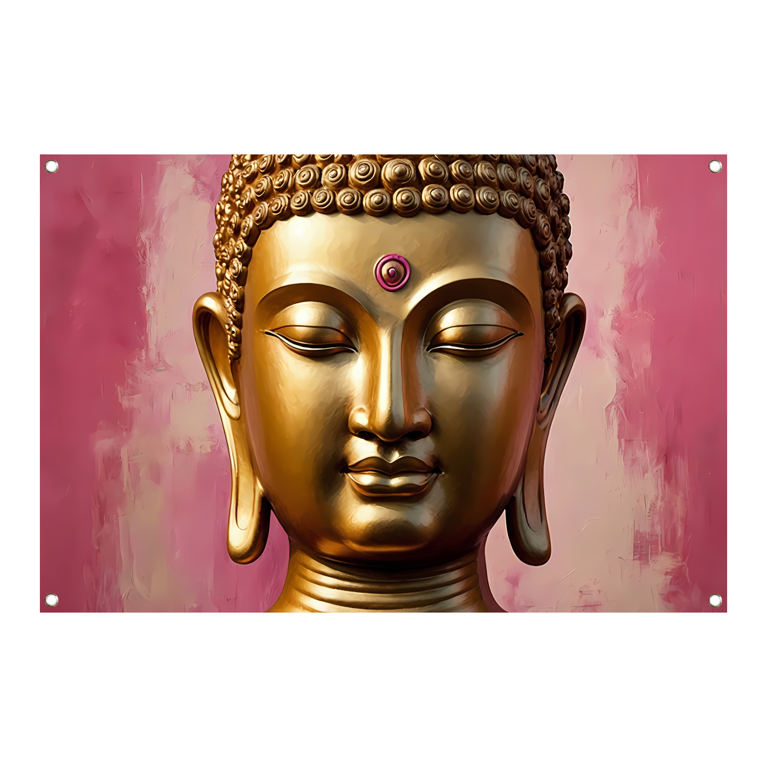 Voeg een vleugje sereniteit toe aan uw tuin met deze prachtige Serene Gouden Boeddha met Roze Achtergrond tuinposter. Bestel nu en geniet van de rustgevende uitstraling die het aan uw buitenruimte zal geven.