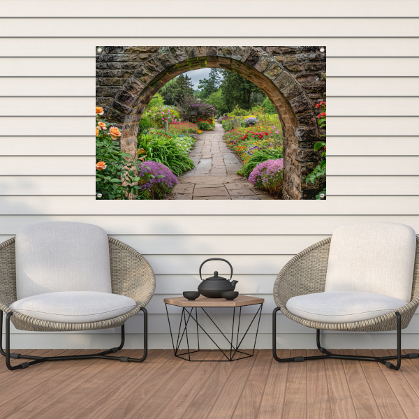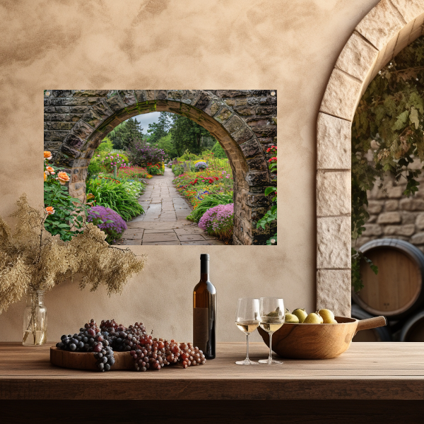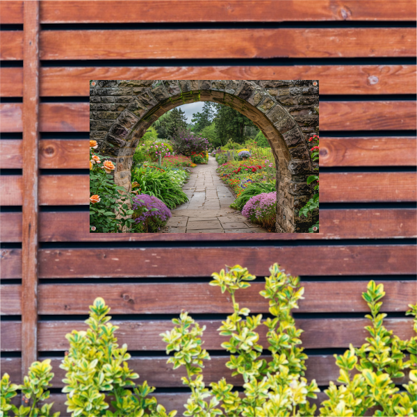 Onze tuinposters zijn UV- en waterbestendig, waardoor ze bestand zijn tegen zon en regen en hun kleuren langdurig mooi blijven. Alle tuinposters van De Muurdecoratie zijn voorzien van ringen in de hoeken, zodat je ze eenvoudig kunt ophangen. Let op: onze tuinposters worden niet met ophangsysteem geleverd.