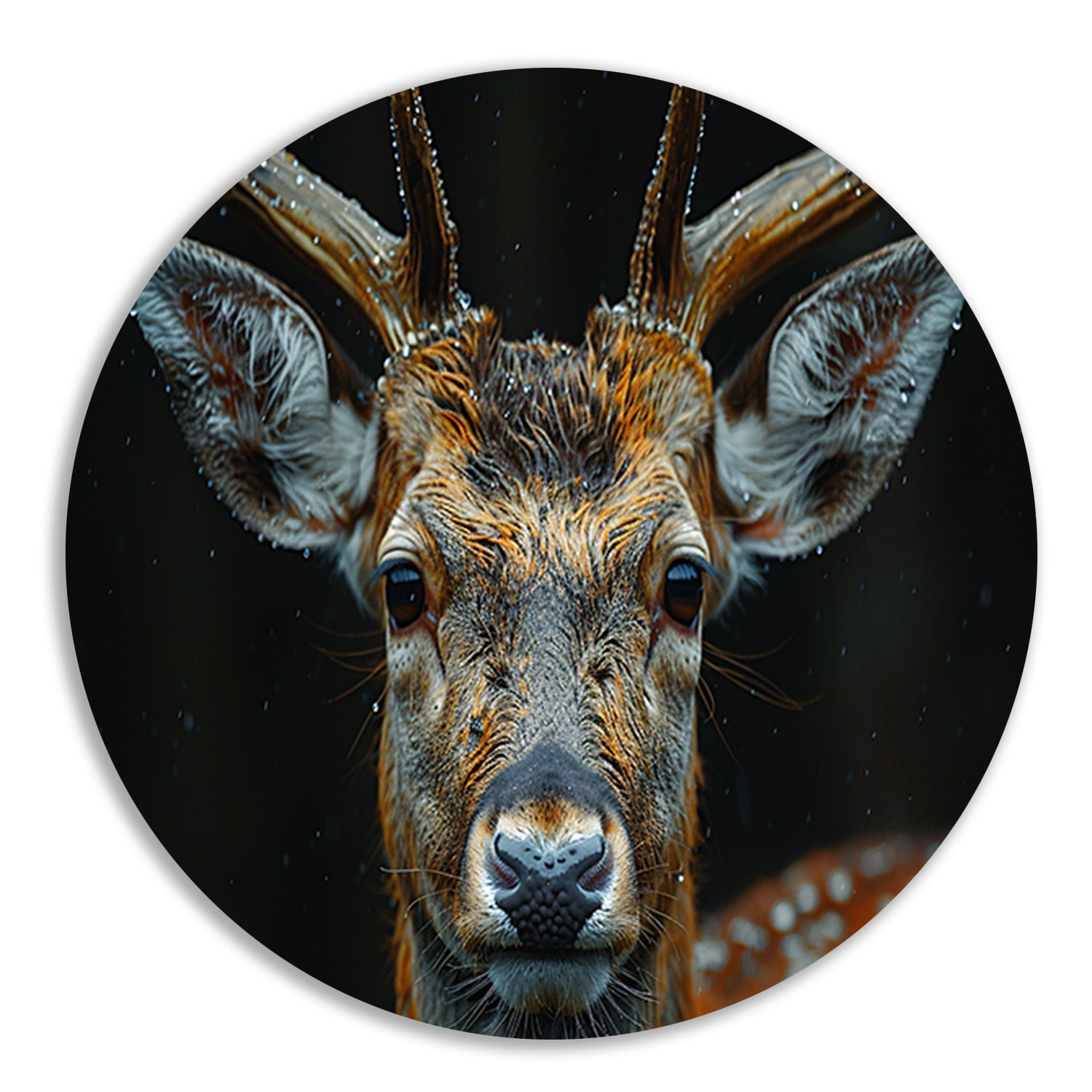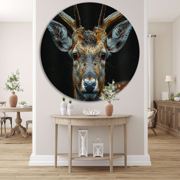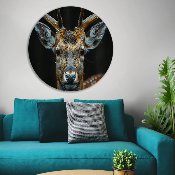 Sfeervol Hertenportret in Bos aluminium muurcirkel