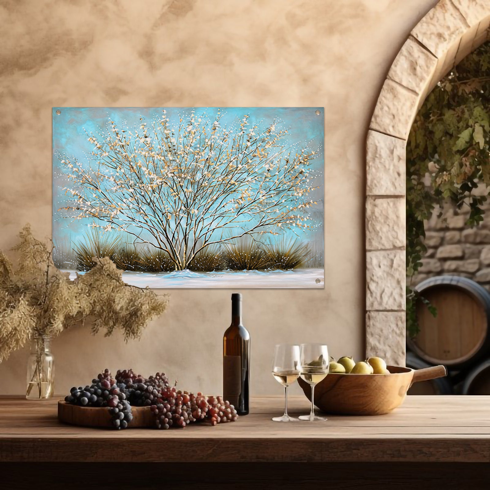 Onze tuinposters zijn UV- en waterbestendig, waardoor ze bestand zijn tegen zon en regen en hun kleuren langdurig mooi blijven. Alle tuinposters van De Muurdecoratie zijn voorzien van ringen in de hoeken, zodat je ze eenvoudig kunt ophangen. Let op: onze tuinposters worden niet met ophangsysteem geleverd.