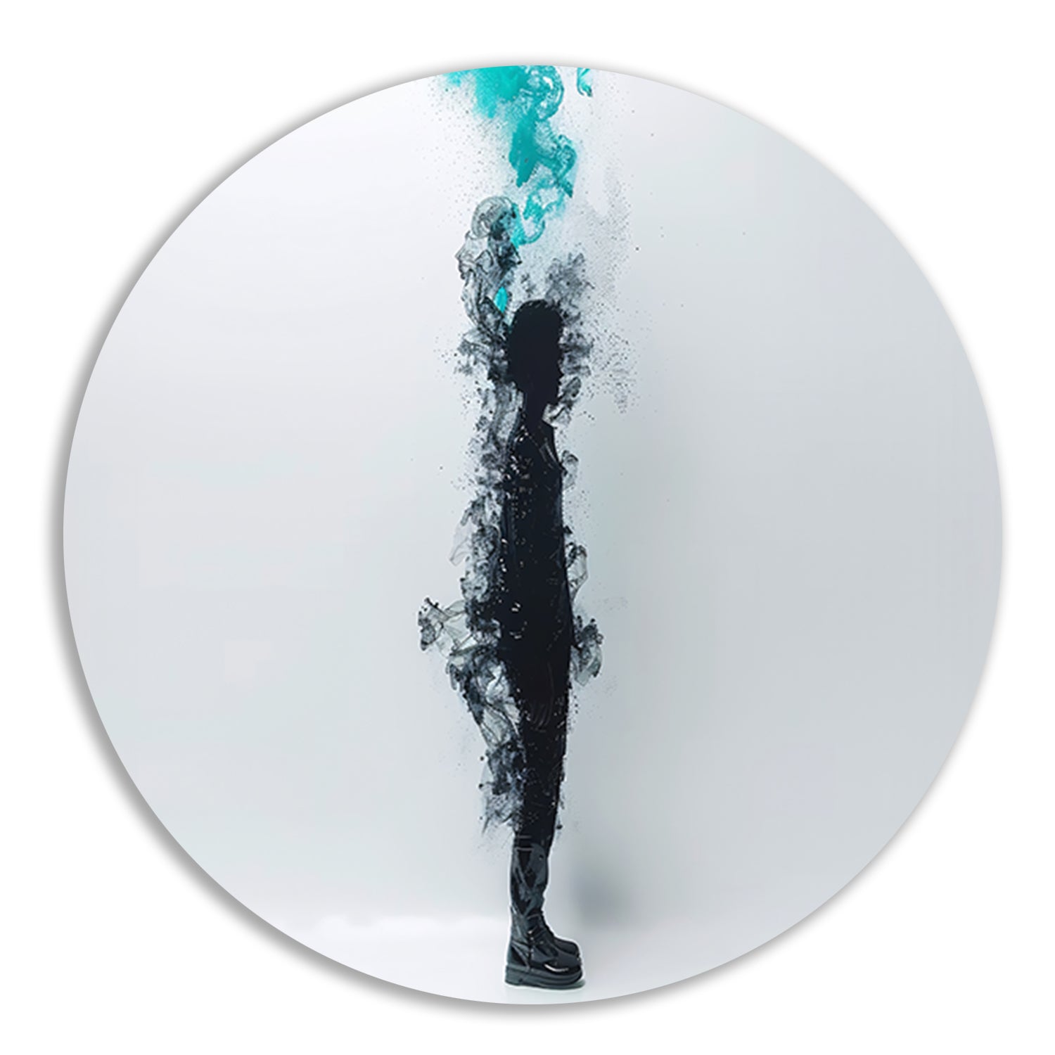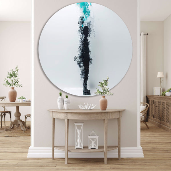 Silhouet in rookachtige abstracte vormen aluminium muurcirkel