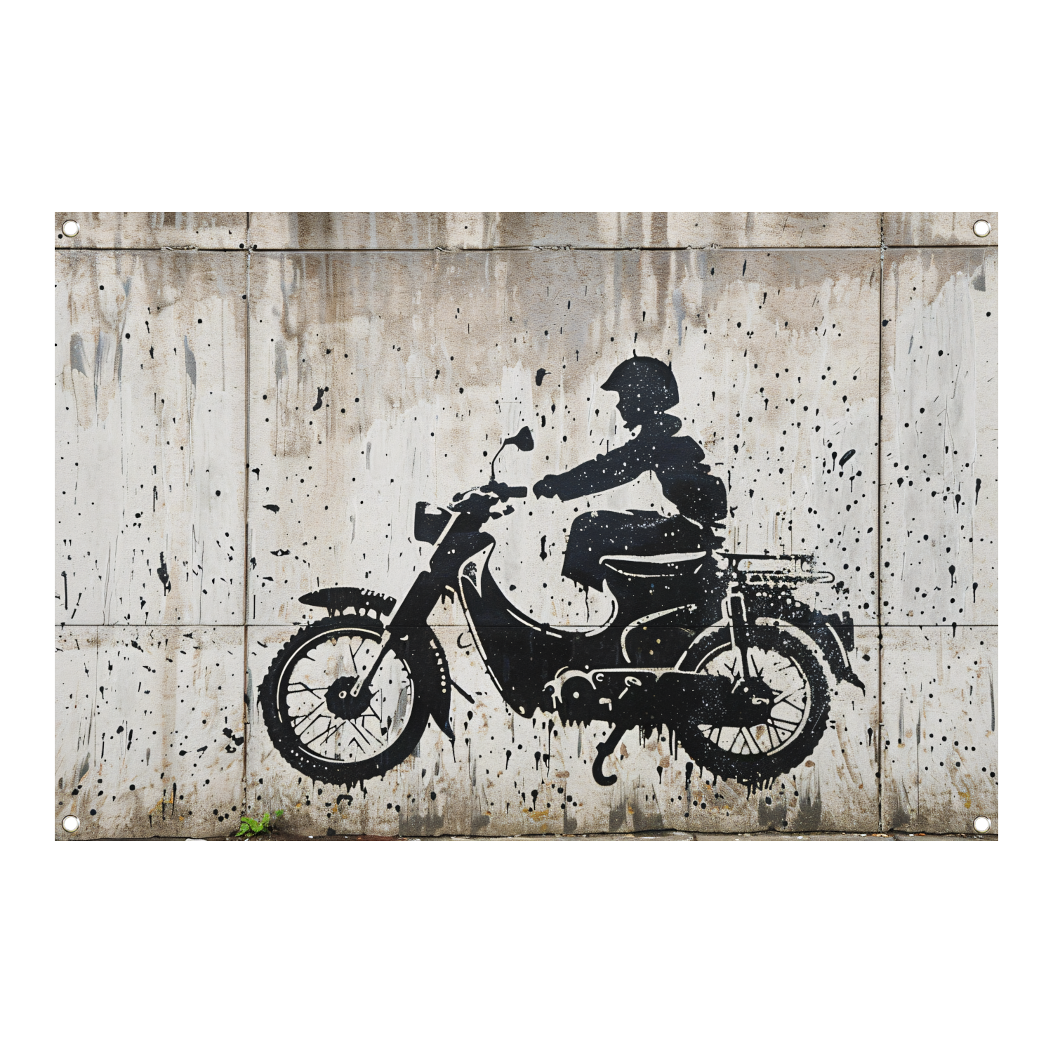 Silhouet motorrijder tegen betonnen achtergrond tuinposter