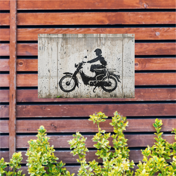 Investeer in de "Silhouet motorrijder tegen betonnen achtergrond tuinposter" en transformeer jouw tuin in een persoonlijke oase die jouw passie en stijl weerspiegelt. Kies vandaag nog het juiste formaat en laat deze prachtige tuinposter jouw buitenruimte naar een hoger niveau tillen!