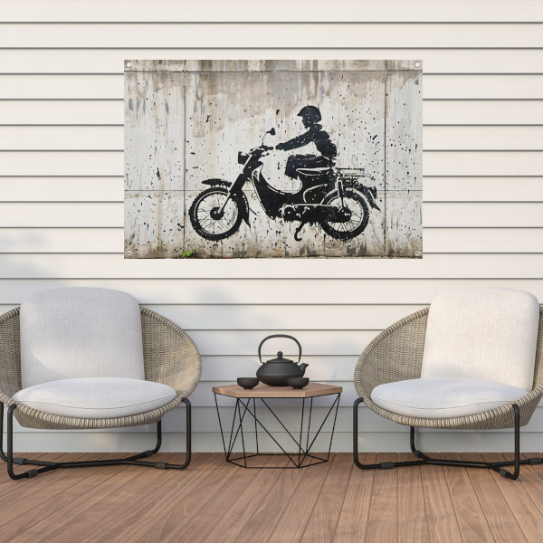 Naast de esthetische waarde voegt deze tuinposter ook een gevoel van avontuur en vrijheid toe aan je buitenleven. Stel je voor dat je lekker in de tuin zit, omringd door groen, terwijl de motorrijder op de achtergrond jou herinnert aan de ontdekkingen die de weg biedt. Het is een geweldige manier om gesprekken te starten met vrienden en familie en kan ook een inspirerende plek zijn voor jouw creatieve momenten.
