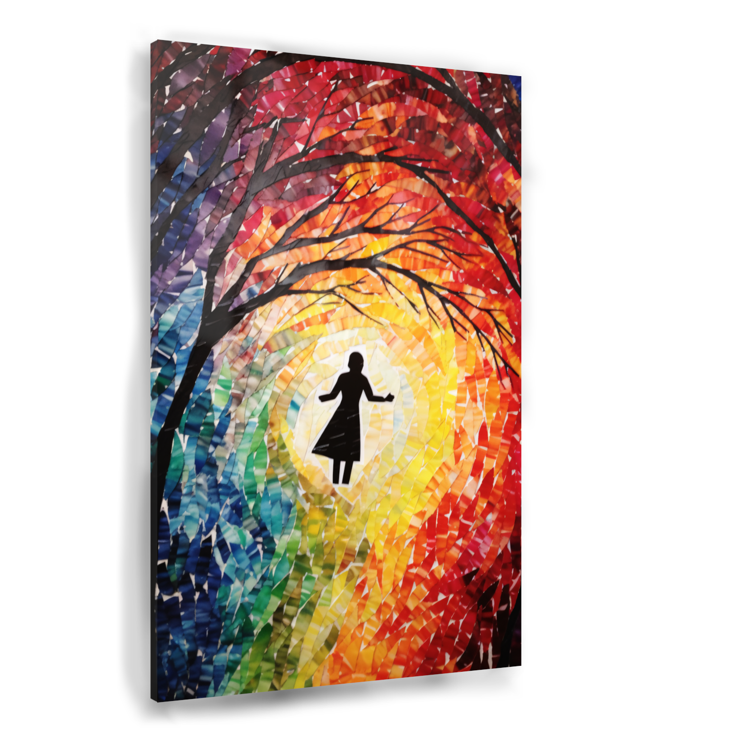 Silhouet Tegen Kleurrijke Mozaïek Achtergrond Acrylglas
