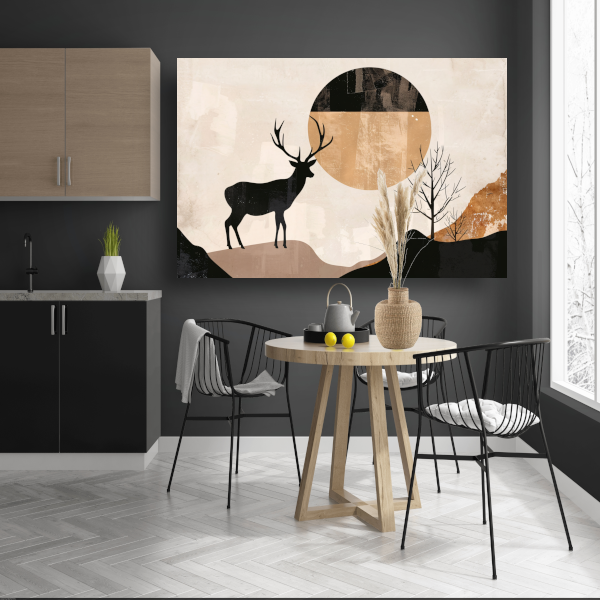Een canvas met baklijst geeft je interieur een luxe en afgewerkte uitstraling. Onze baklijsten zijn gemaakt van hoogwaardig hout en verkrijgbaar in zwart met een zichtbare houtnerfstructuur, wat een moderne en elegante look biedt. De lijst heeft een framedikte van 3,5 cm. De montage van het canvas in de baklijst en aan de muur is eenvoudig.