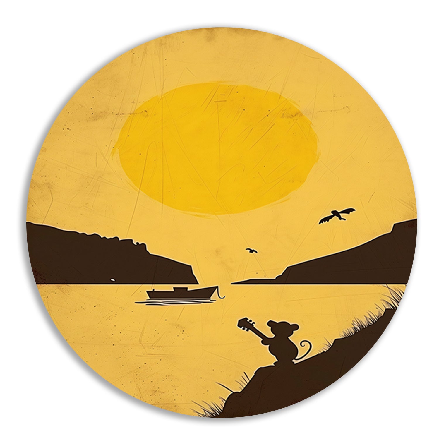 Silhouet van Muis met Gitaar bij Zonsondergang forex muurcirkel