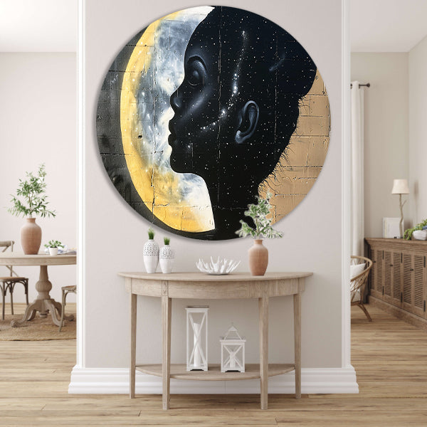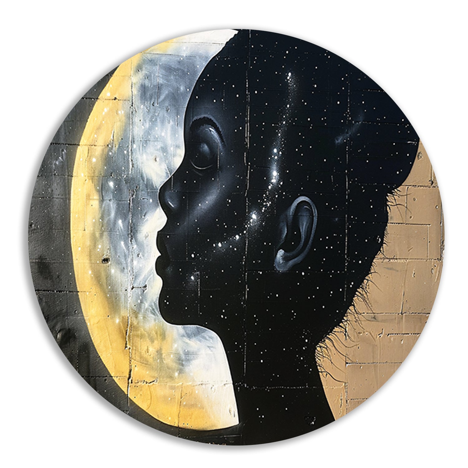 Silhouet van vrouw met sterren en maan aluminium muurcirkel