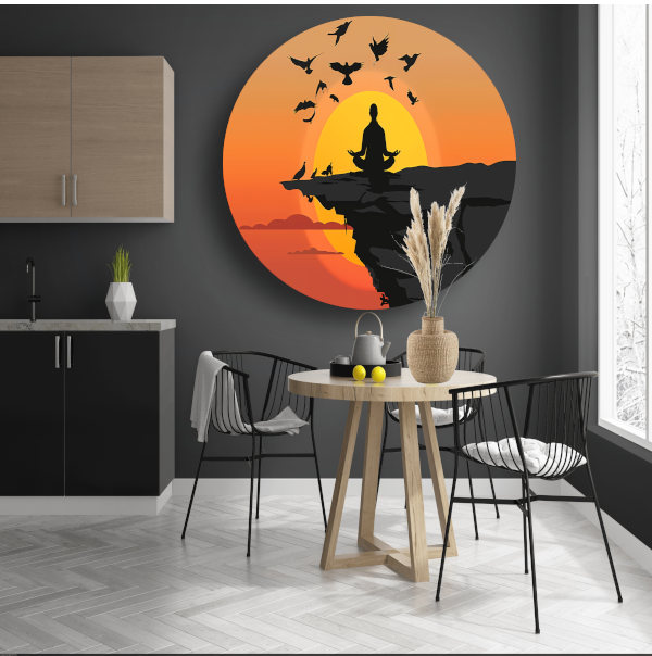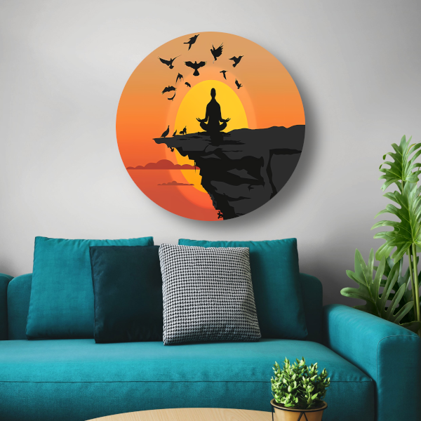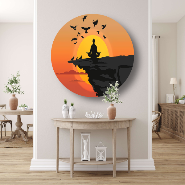 Silhouet Zonsondergang Meditatie forex muurcirkel