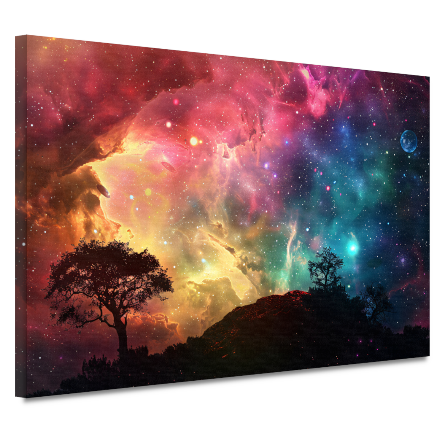 Silhouetboom tegen sterrenhemel canvas