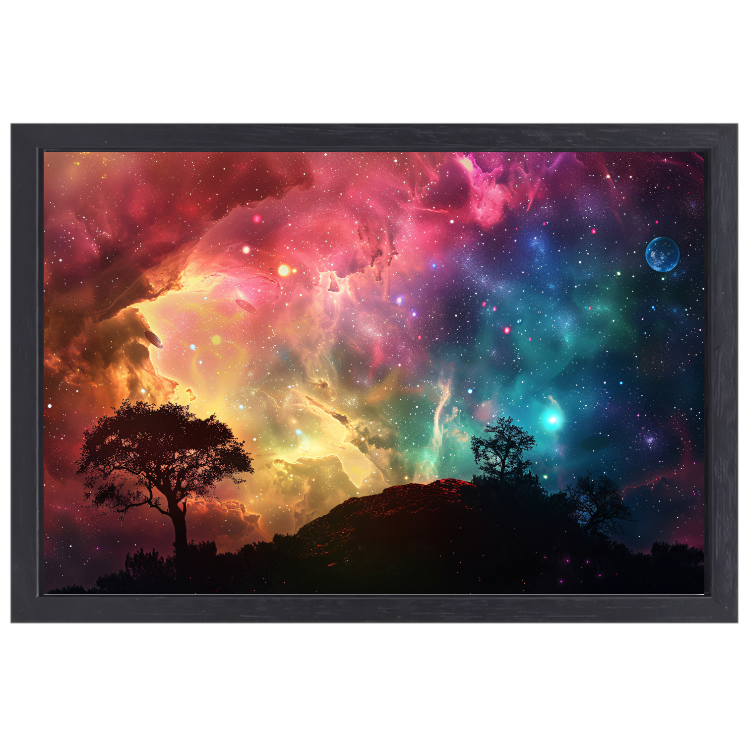 Silhouetboom tegen sterrenhemel canvas met baklijst