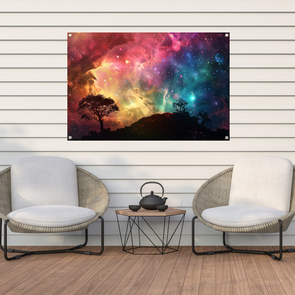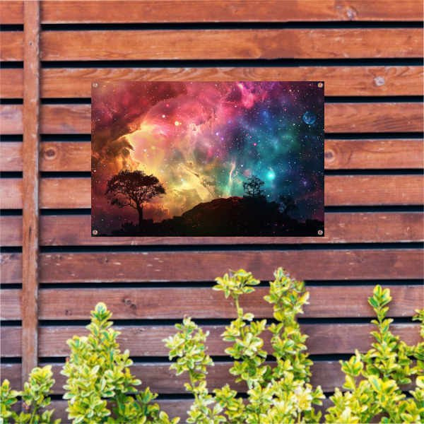 Onze tuinposters zijn UV- en waterbestendig, waardoor ze bestand zijn tegen zon en regen en hun kleuren langdurig mooi blijven. Alle tuinposters van De Muurdecoratie zijn voorzien van ringen in de hoeken, zodat je ze eenvoudig kunt ophangen. Let op: onze tuinposters worden niet met ophangsysteem geleverd.