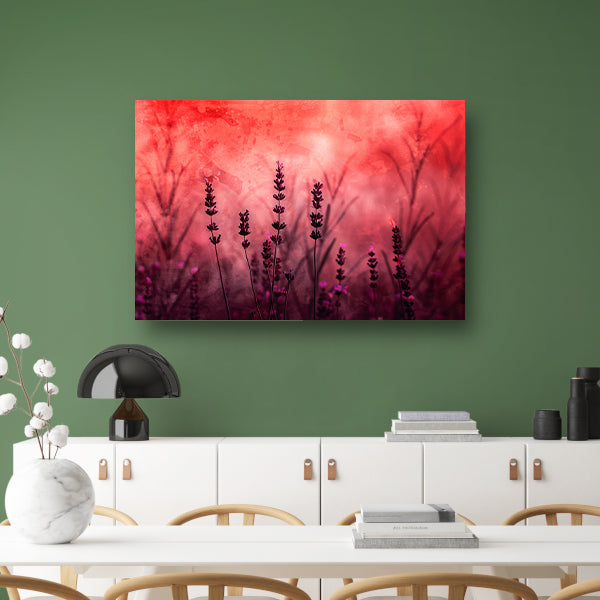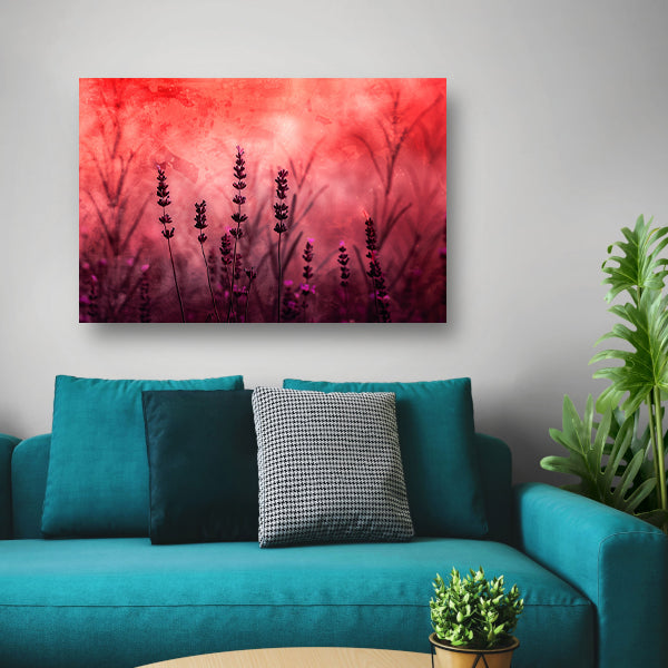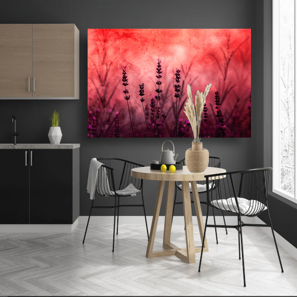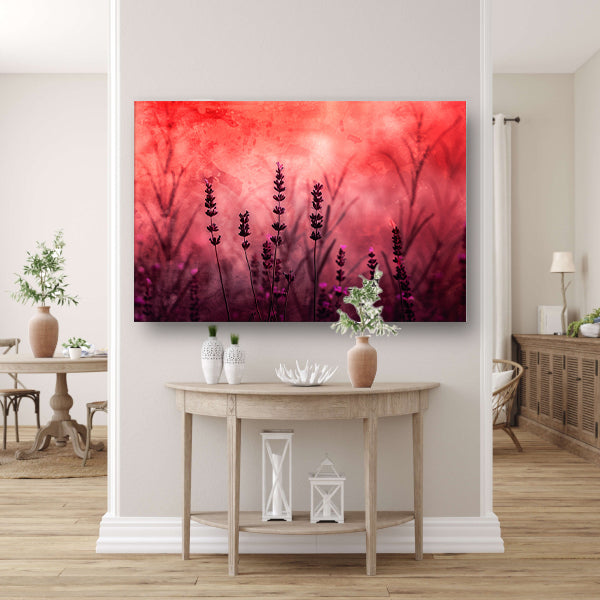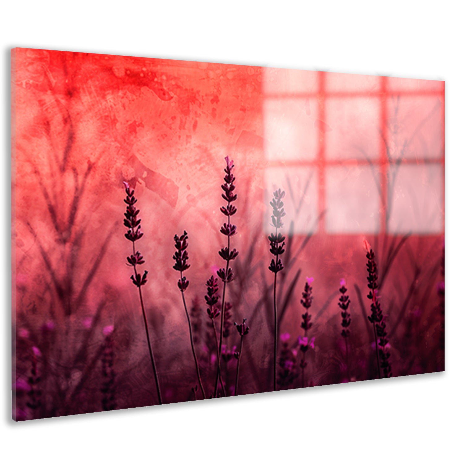 Silhouetten van lavendel tegen rode achtergrond acrylglas