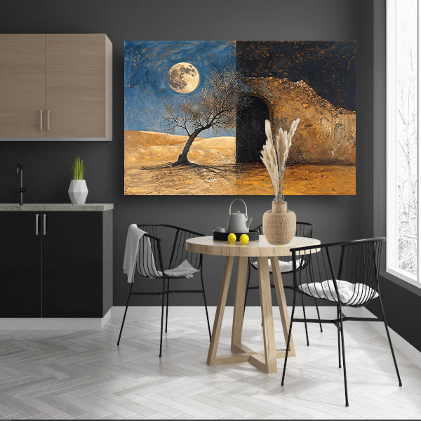 Een canvas met baklijst geeft je interieur een luxe en afgewerkte uitstraling. Onze baklijsten zijn gemaakt van hoogwaardig hout en verkrijgbaar in zwart met een zichtbare houtnerfstructuur, wat een moderne en elegante look biedt. De lijst heeft een framedikte van 3,5 cm. De montage van het canvas in de baklijst en aan de muur is eenvoudig.