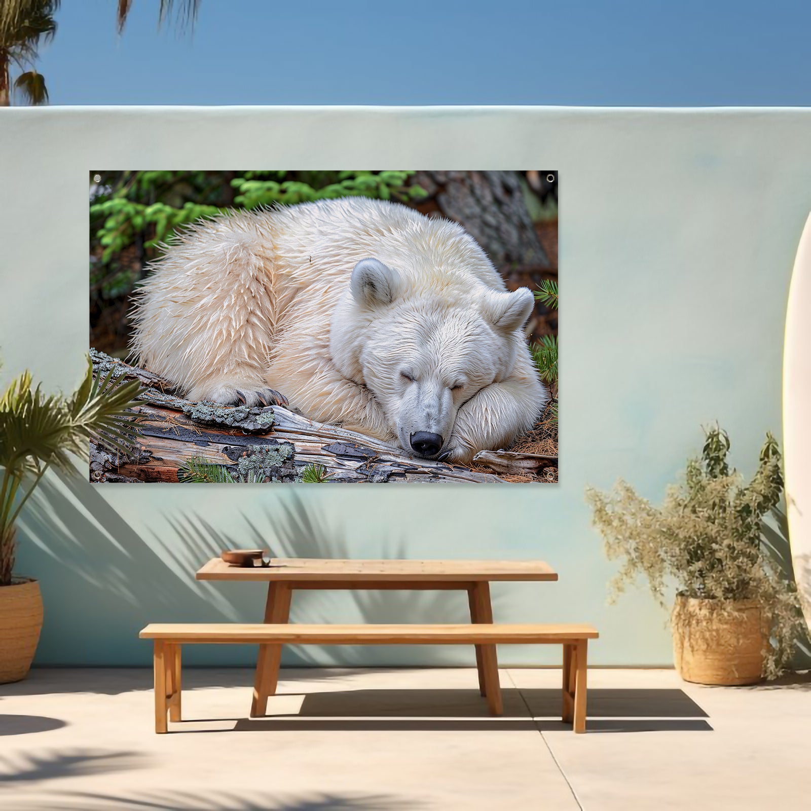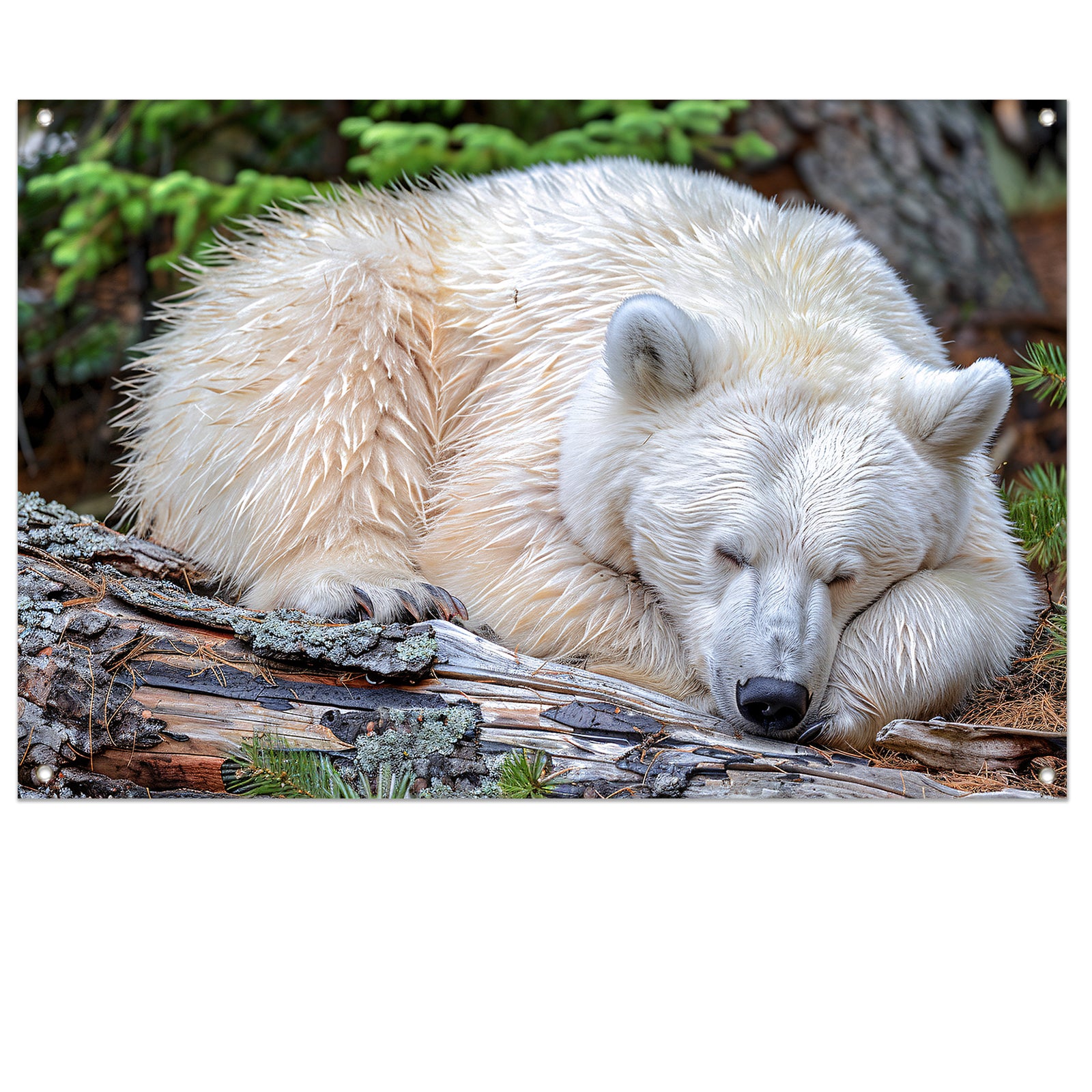 Slapende beer op boomstam in de natuur tuinposter