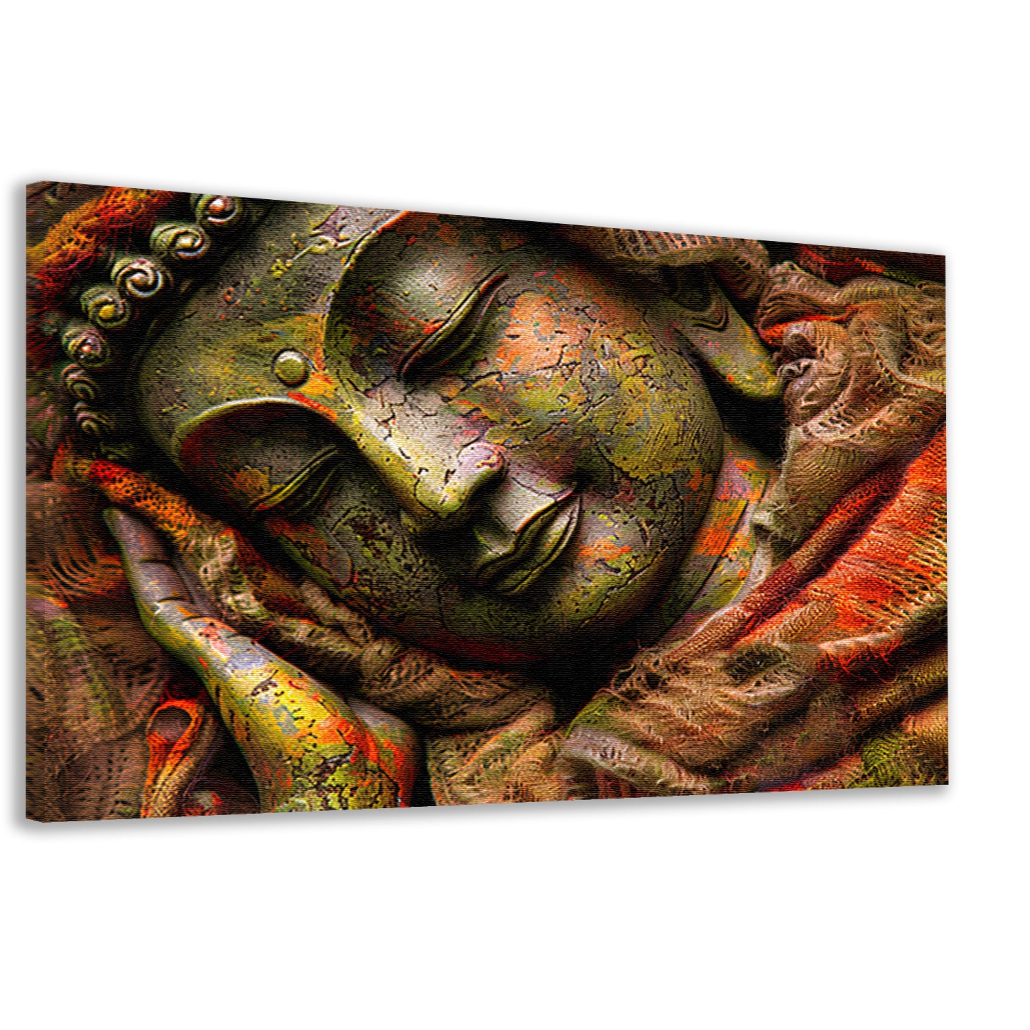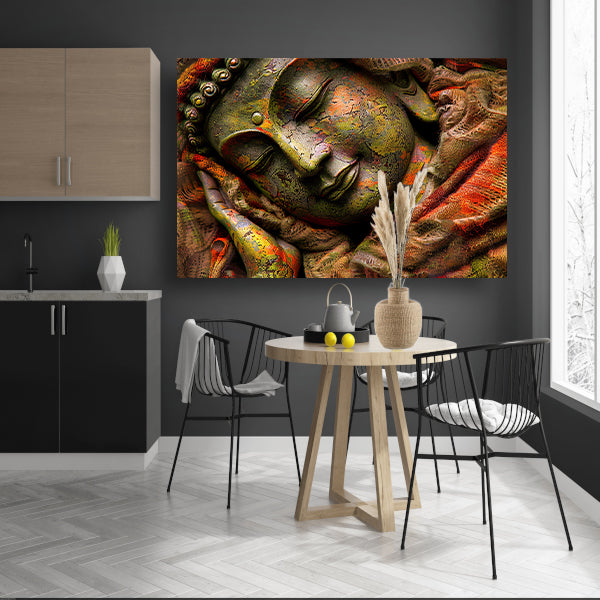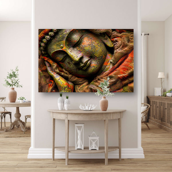 Slapende Boeddha in kleurrijke omhulling canvas