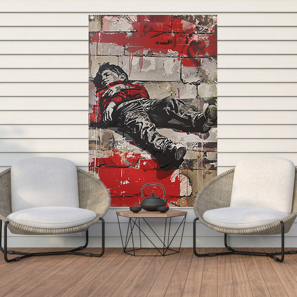 Slapende Jongen Tegen Graffiti Muur tuinposter