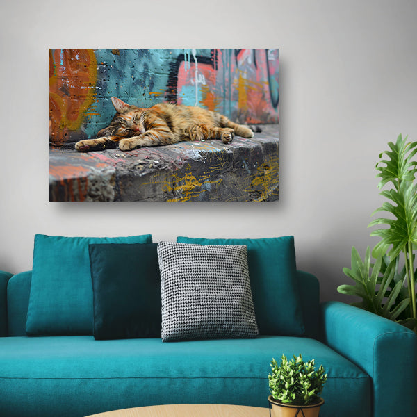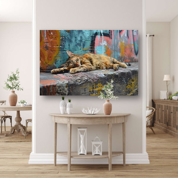 Dit kunstwerk is ideaal voor liefhebbers van katten en dierenliefhebbers in het algemeen. Het voegt een speelse en artistieke touch toe aan elke kamer en zal zeker een blikvanger zijn. Voeg dit prachtige slapende kat bij gekleurde muur acrylglas toe aan je collectie en geniet van de rustgevende uitstraling die het met zich meebrengt.