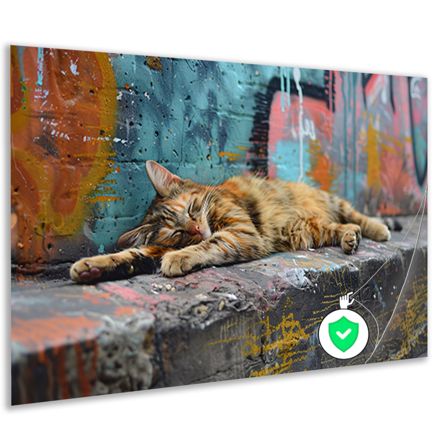 Slapende kat bij gekleurde muur poster