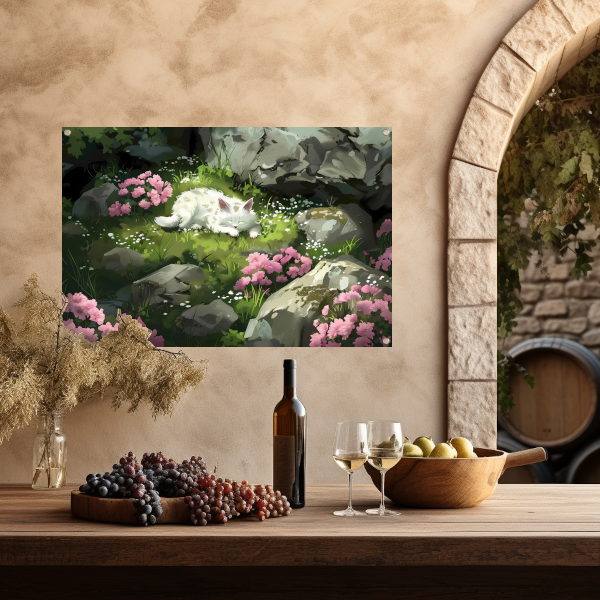 Onze tuinposters zijn UV- en waterbestendig, waardoor ze bestand zijn tegen zon en regen en hun kleuren langdurig mooi blijven. Alle tuinposters van De Muurdecoratie zijn voorzien van ringen in de hoeken, zodat je ze eenvoudig kunt ophangen. Let op: onze tuinposters worden niet met ophangsysteem geleverd.