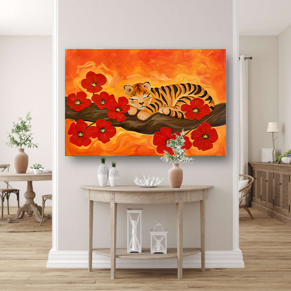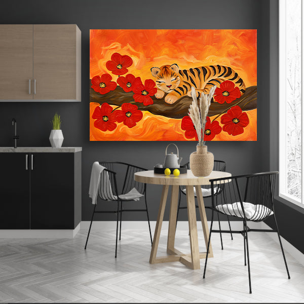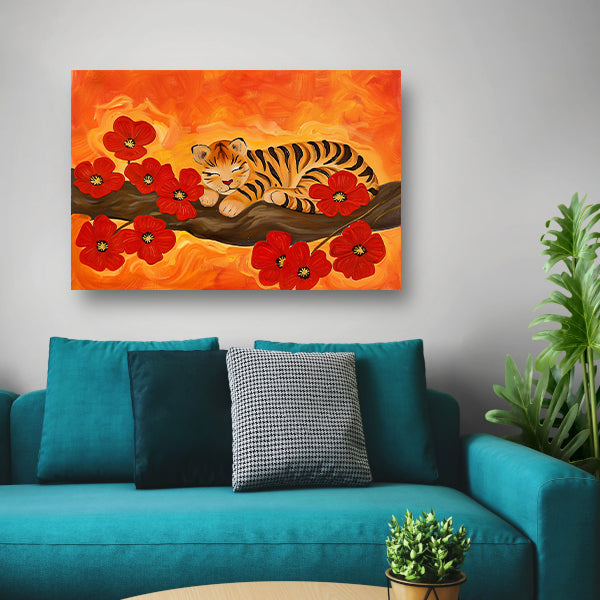 Slapende tijger omringd door rode bloemen acrylglas