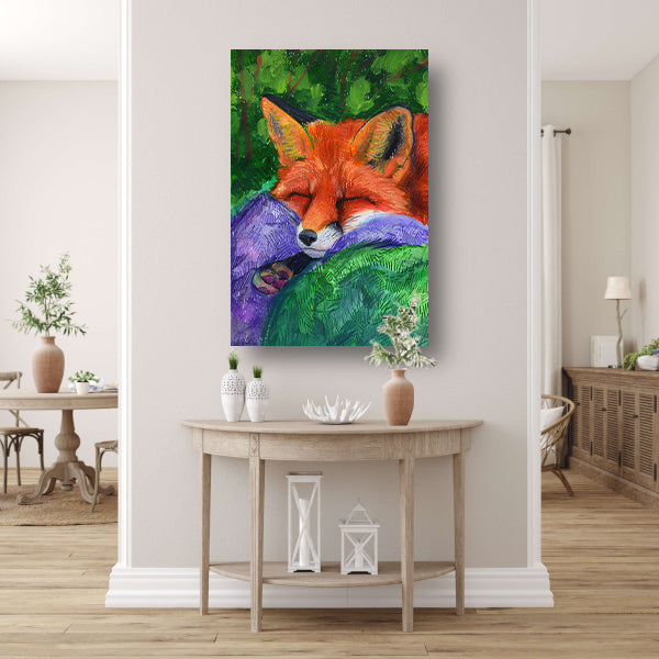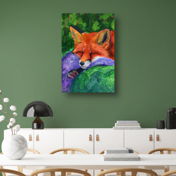 Slapende vos in kleurrijk bos schilderij acrylglas