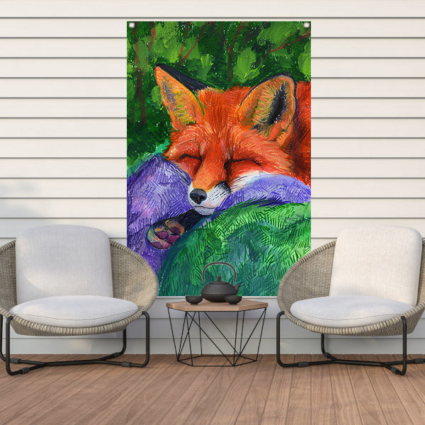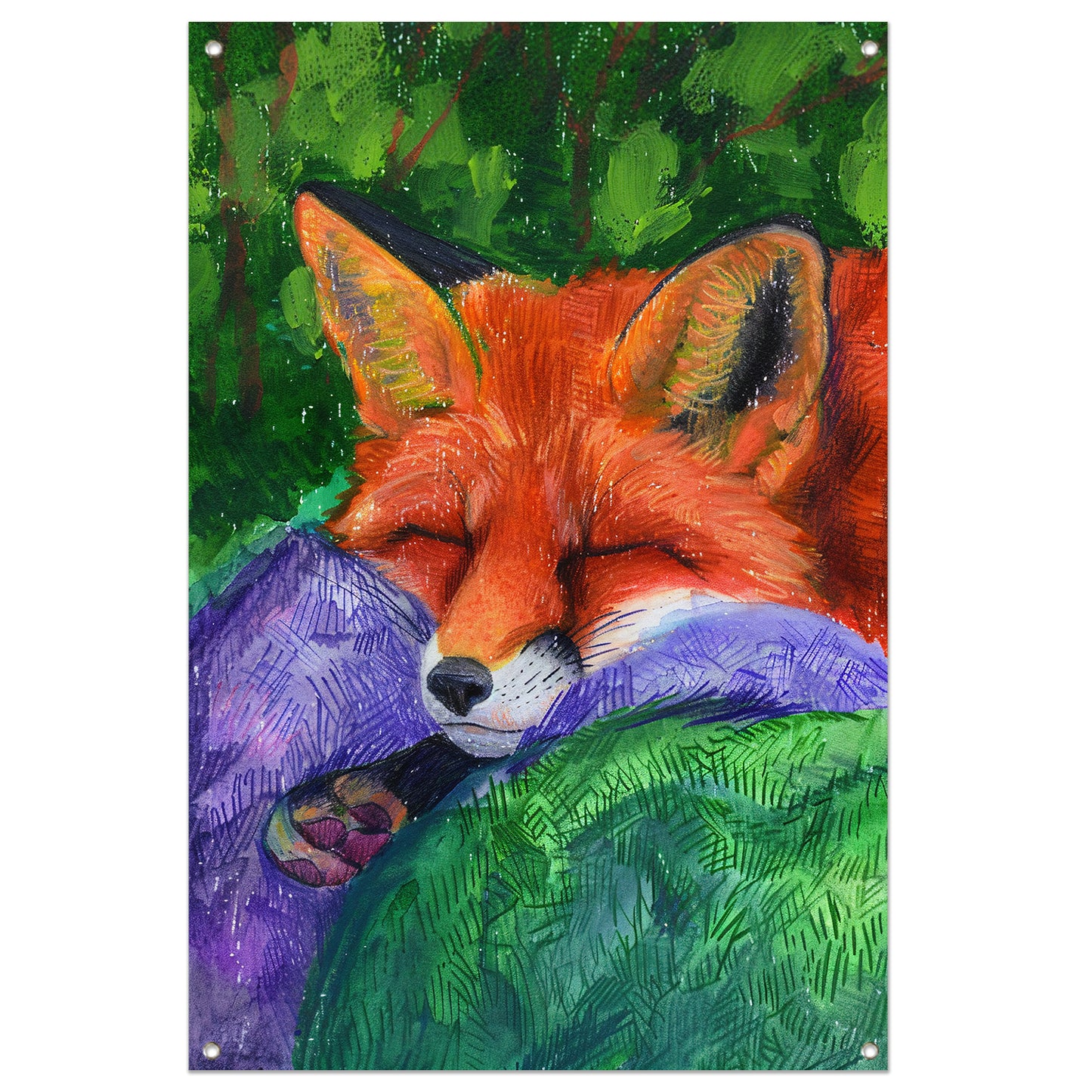 Slapende vos in kleurrijk bos schilderij tuinposter