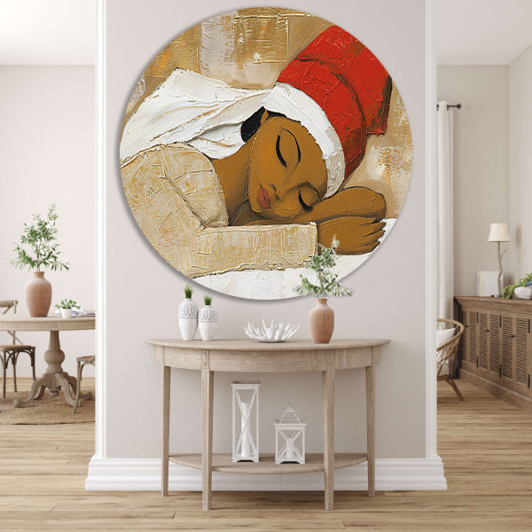 Slapende vrouw met rode hoed schilderij aluminium muurcirkel
