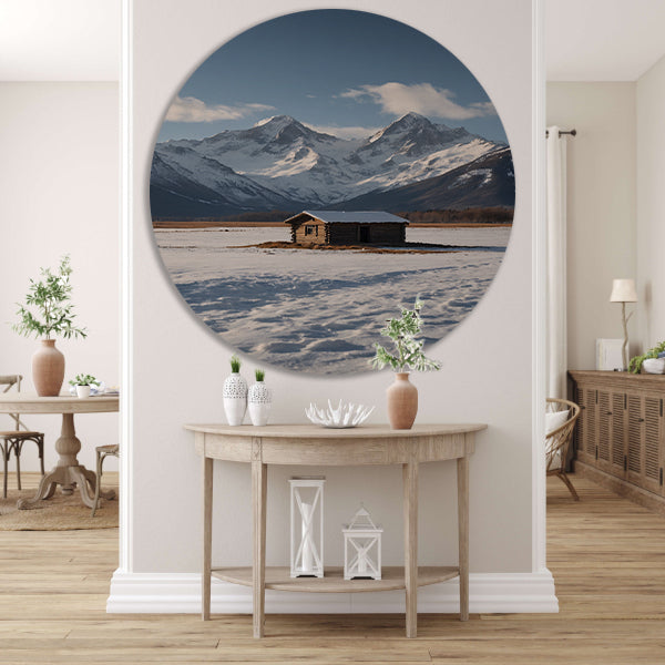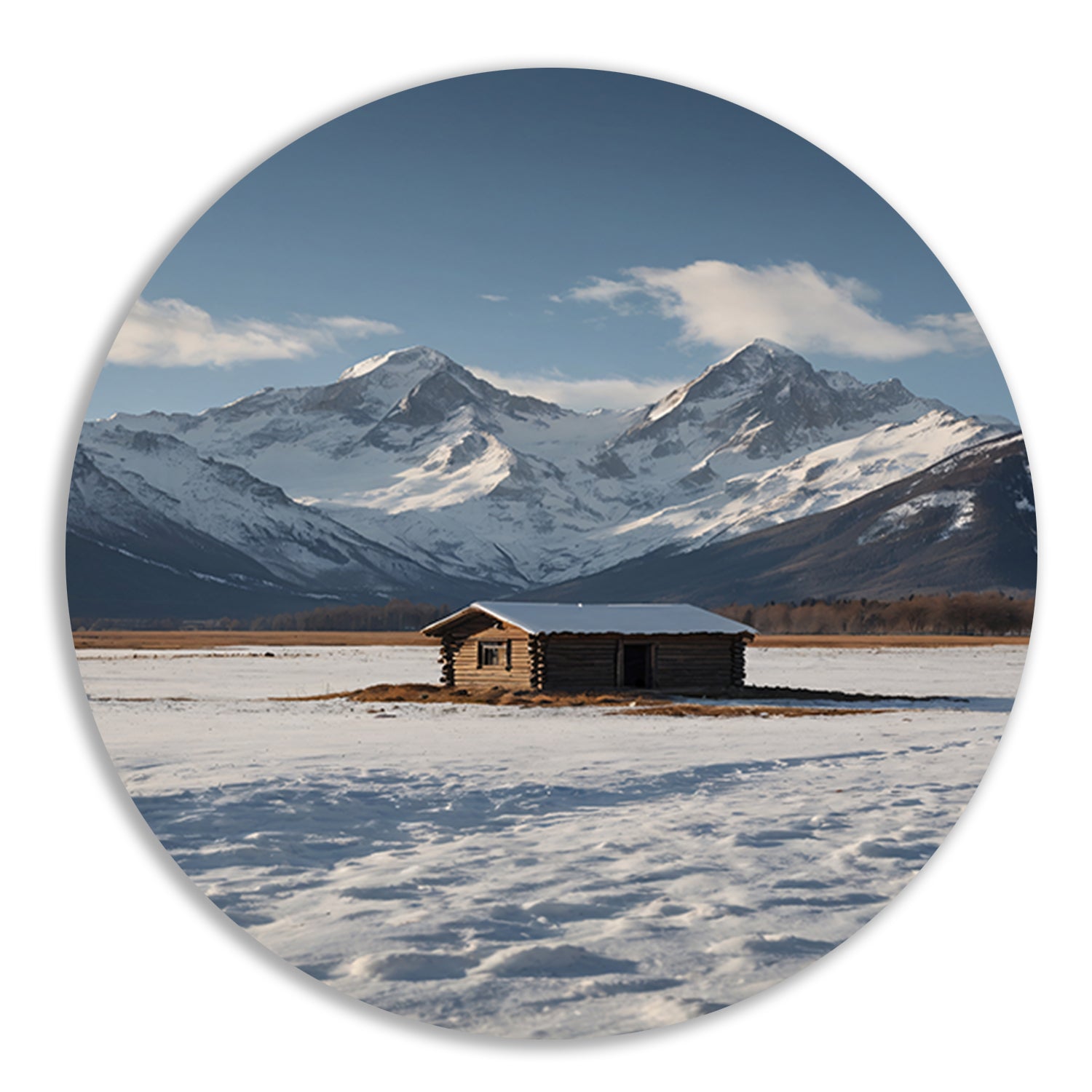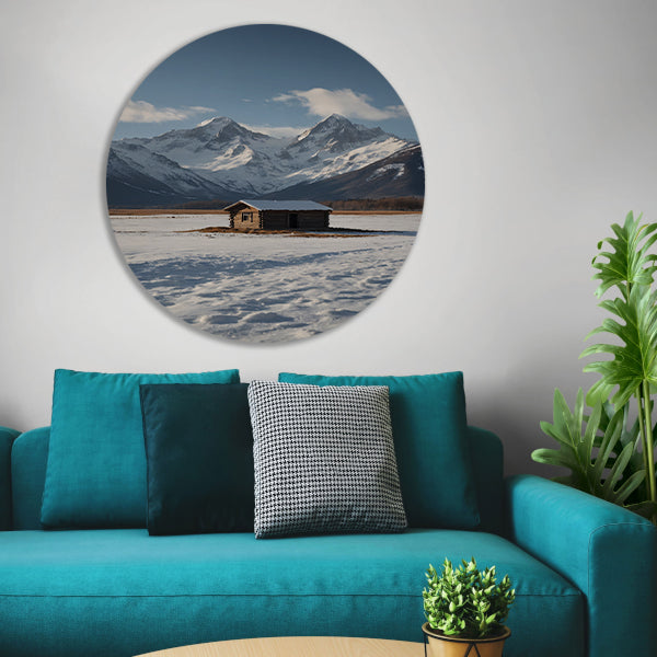 Solitaire Hut tegen Sneeuwbergen Panorama aluminium muurcirkel