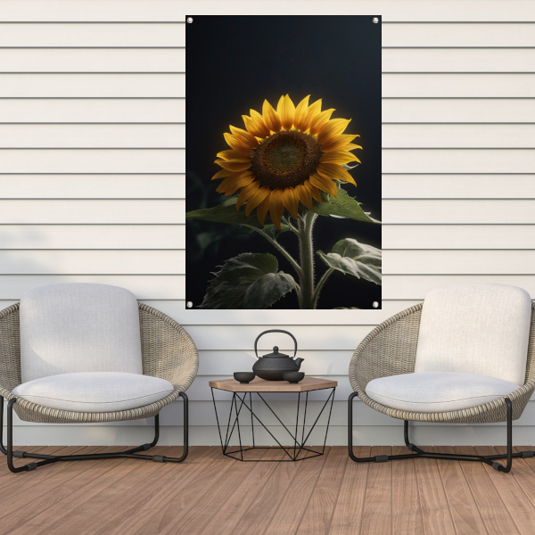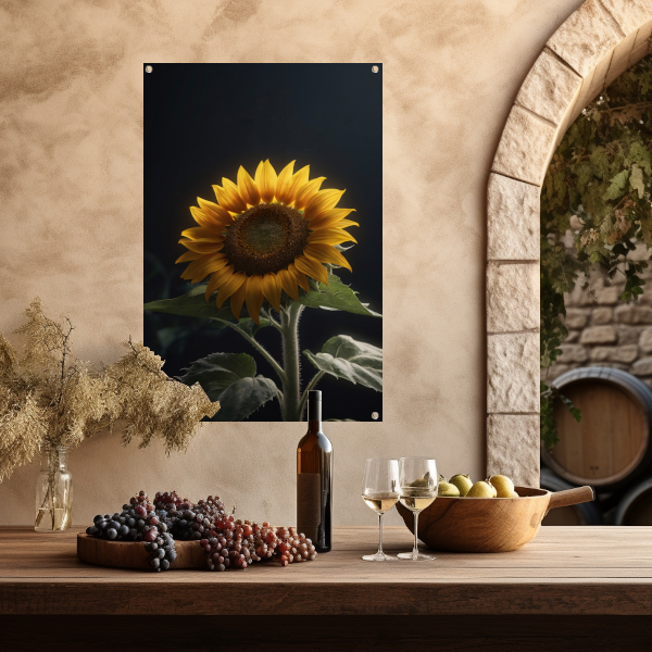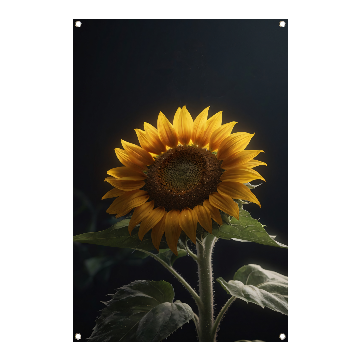 Solitaire zonnebloem in zachte verlichting tuinposter