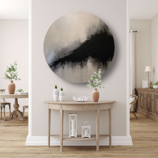 Spel van licht en schaduw in zwart-wit aluminium muurcirkel
