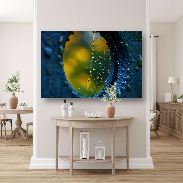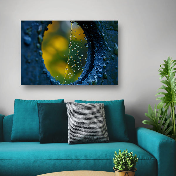 Spinnenweb met dauwdruppels in de ochtendzon canvas