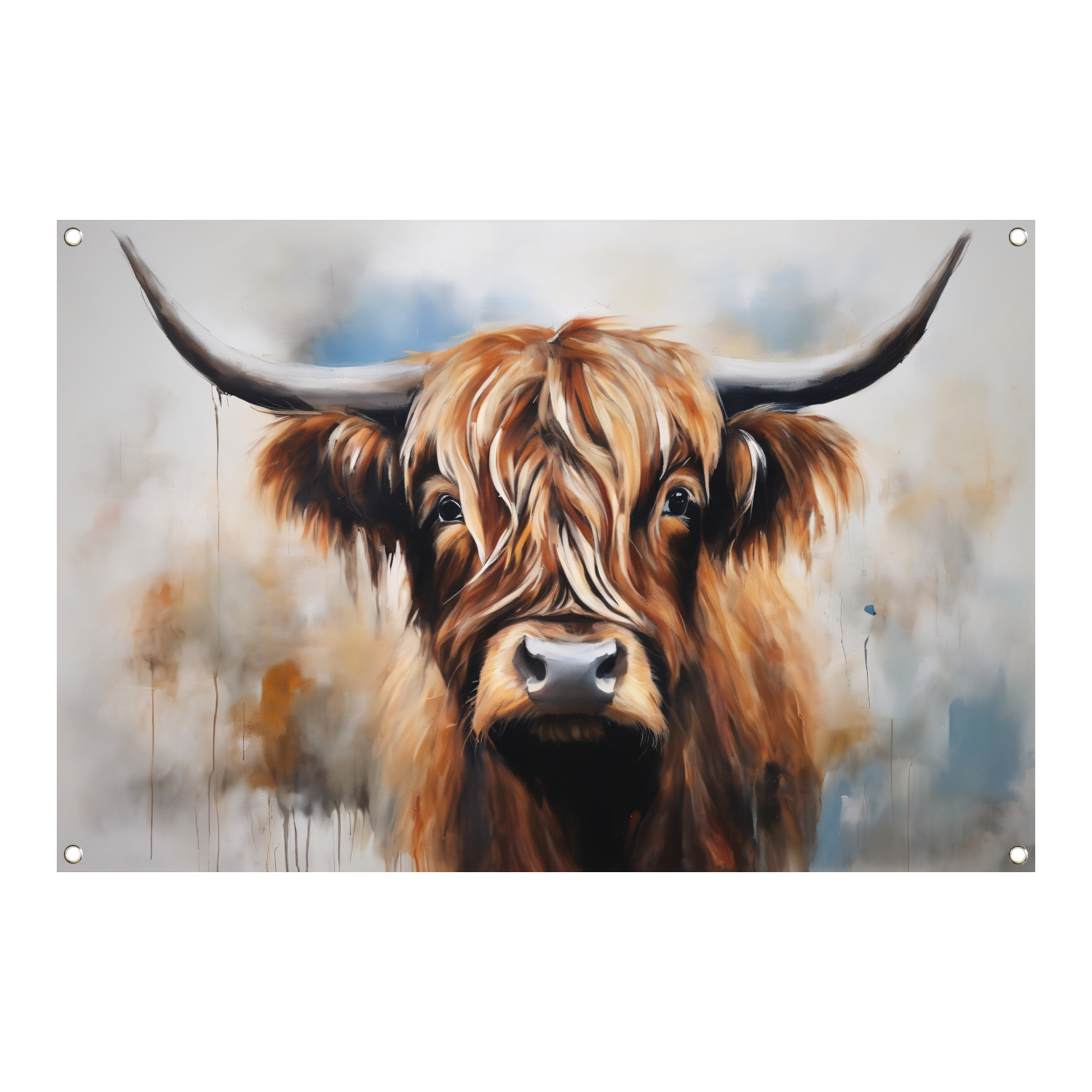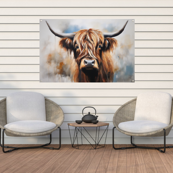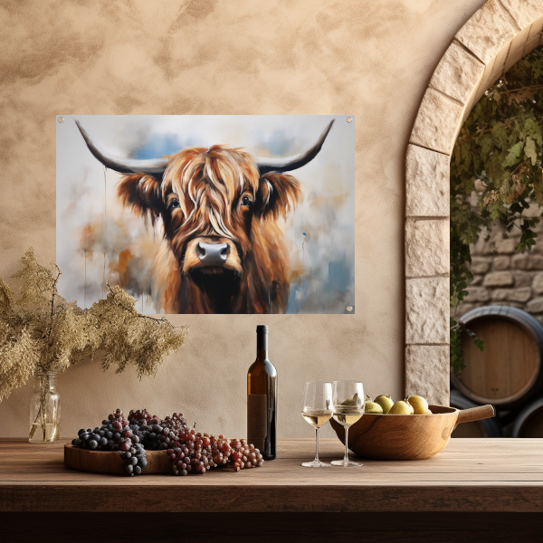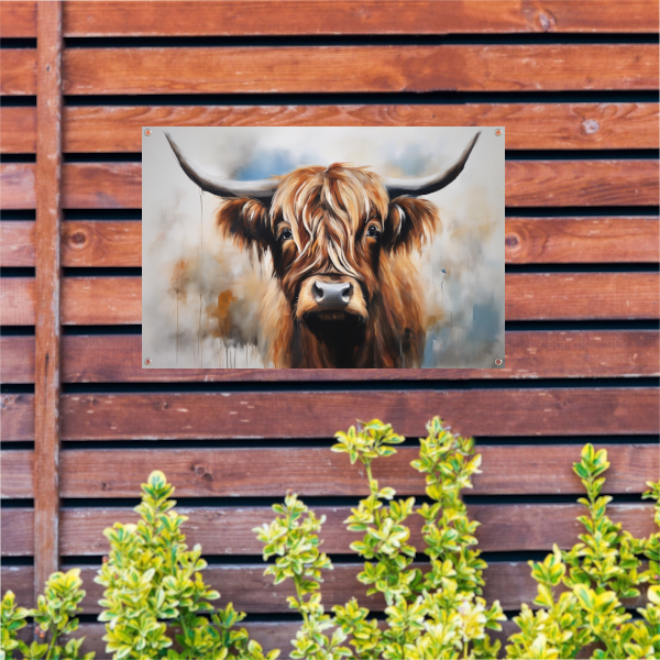 Het thema van deze tuinposter is de natuur en de schoonheid van dieren. De Schotse Hooglander staat symbool voor kracht en vrijheid en zal zeker de aandacht trekken van voorbijgangers. De kleuren zijn levendig en realistisch, waardoor het lijkt alsof de Hooglander echt in jouw tuin staat.