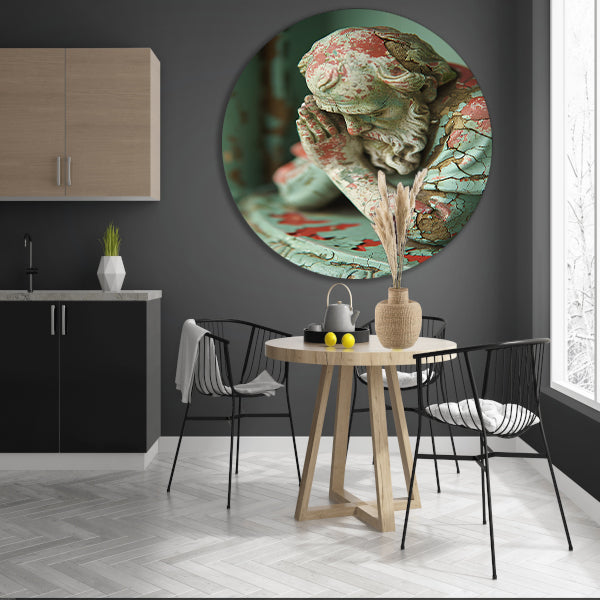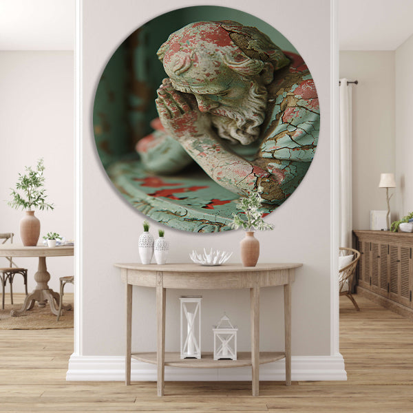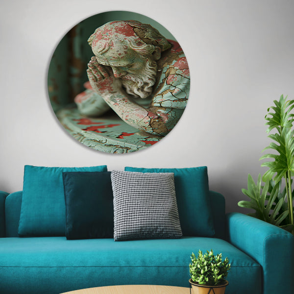 Statue with Weathered Paint and Deep Gaze aluminium muurcirkel