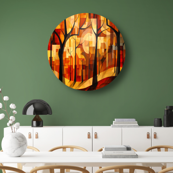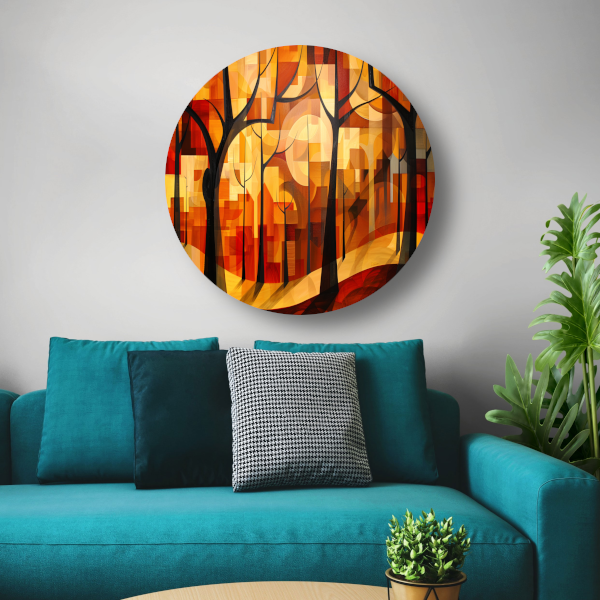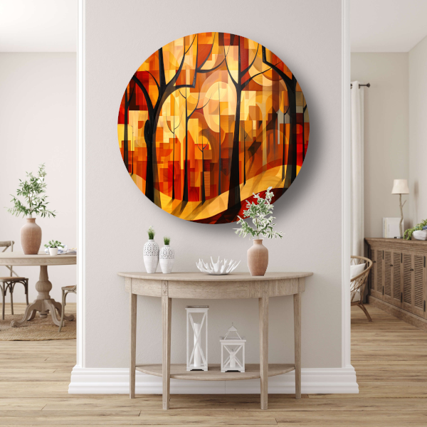 Stedelijke bomen in abstracte herfstkleuren aluminium muurcirkel