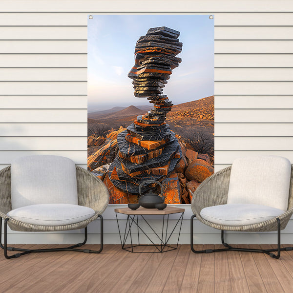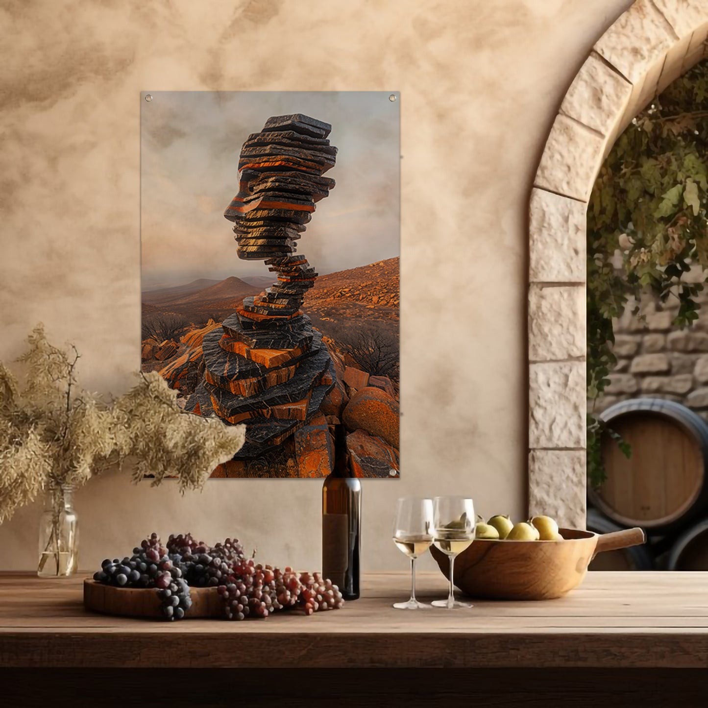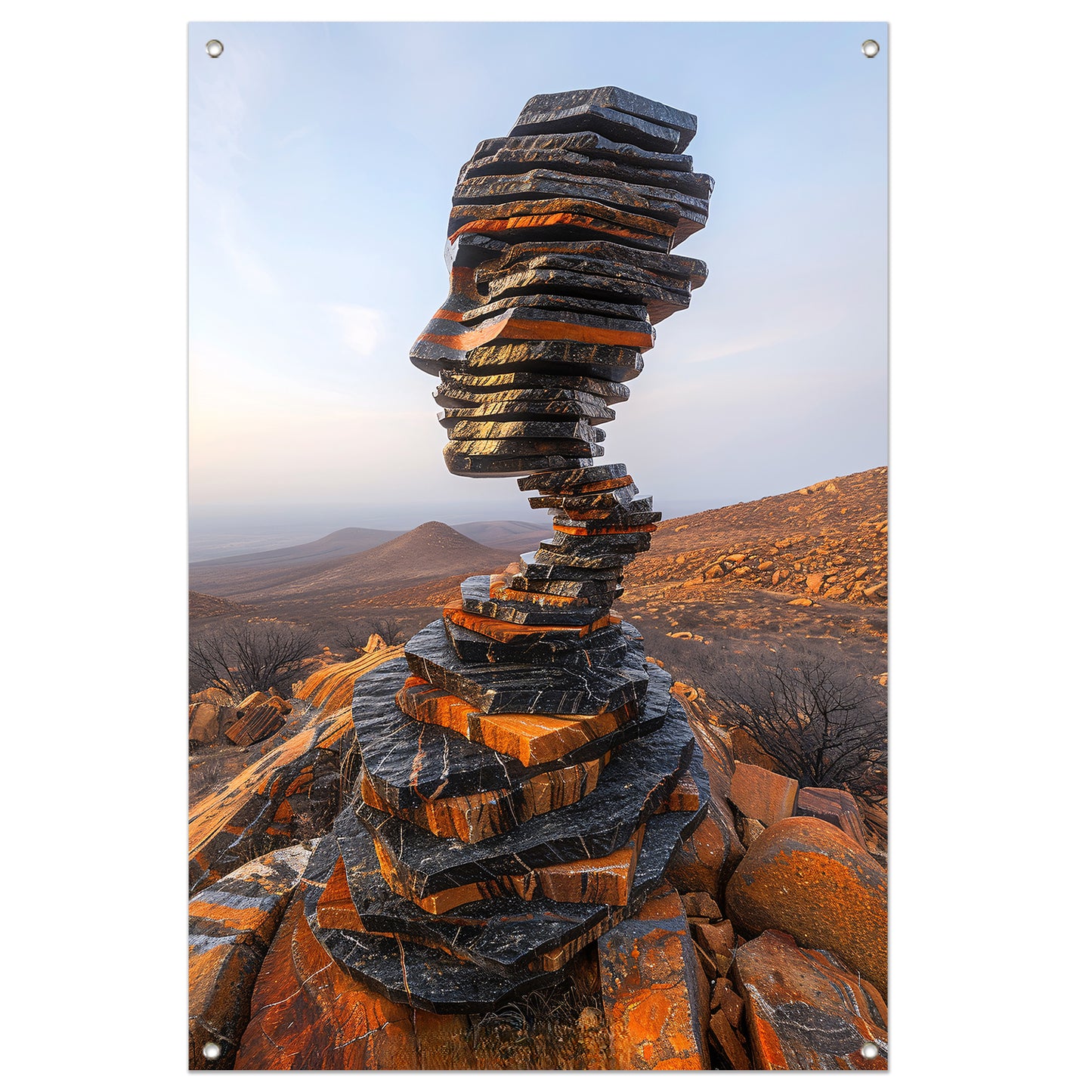 Stenen Gezicht in Uitgestrekt Landschap tuinposter